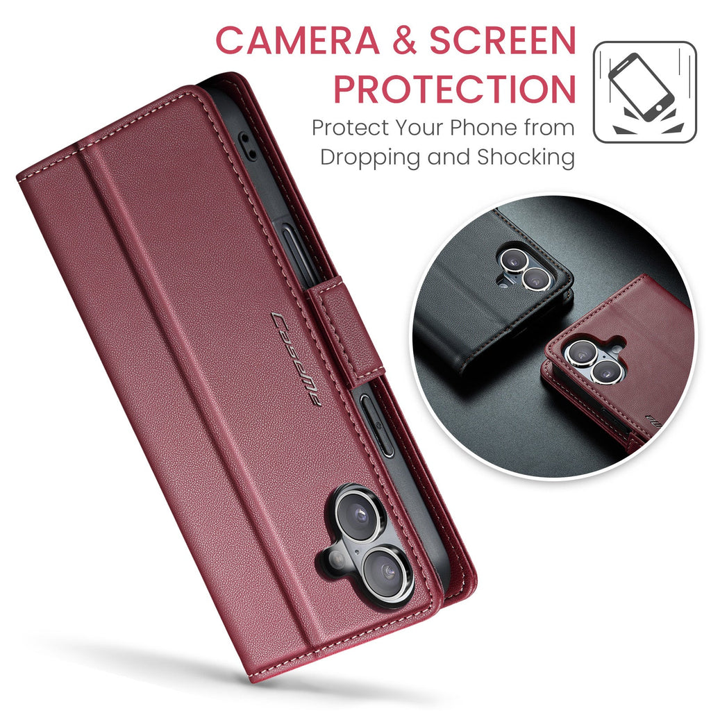 CaseMe Retro PU Leather Wallet Case for iPhone 17 – RFID, Card Slots, Stand Function