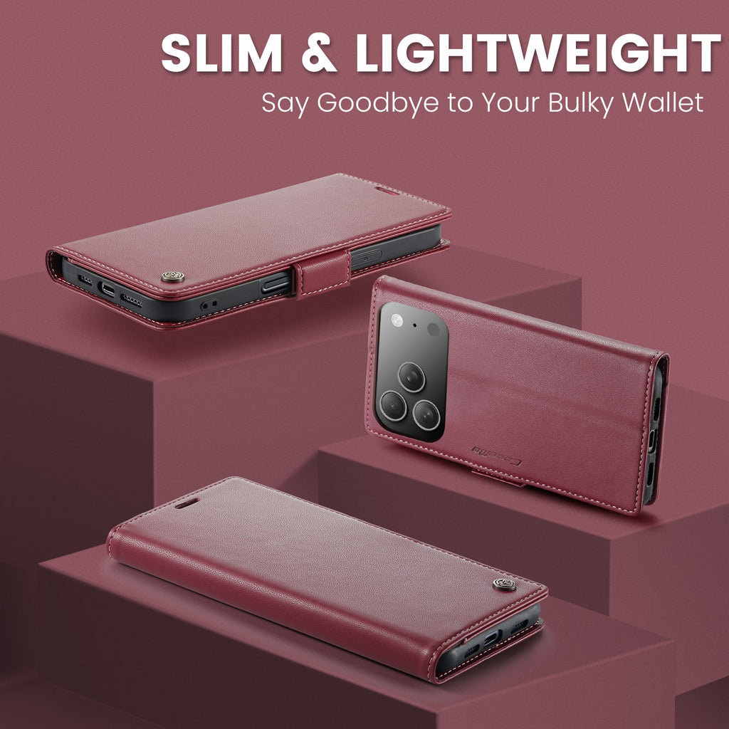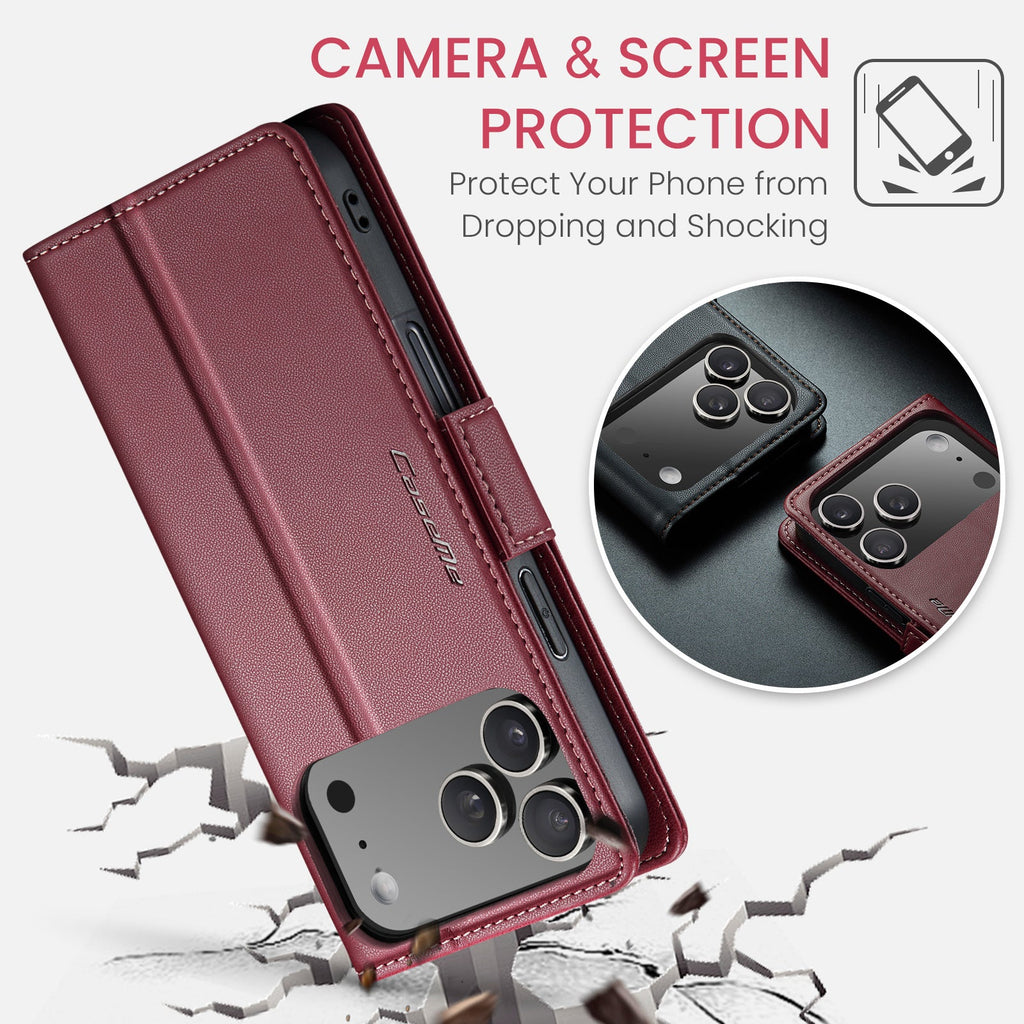 CaseMe Retro PU Leather Wallet Case for iPhone 17 Pro – RFID, Card Slots, Stand Function