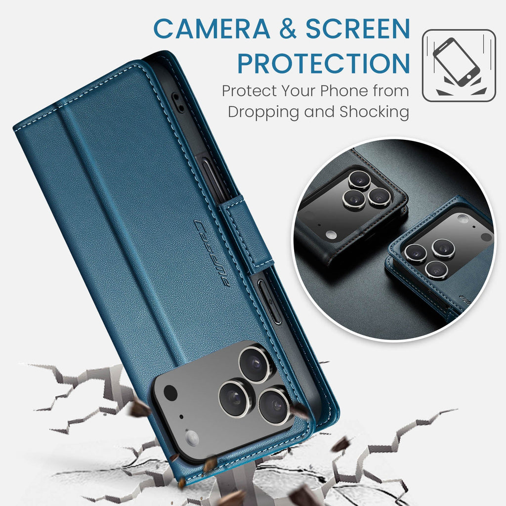 CaseMe Retro PU Leather Wallet Case for iPhone 17 Pro Max – RFID, Card Slots, Stand Function
