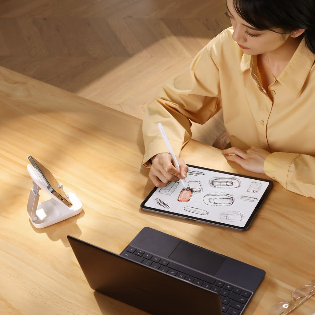The adjustable phone holder is a useful accessory during office work or home activities. The stand has the ability to change the angle of inclination of the arm and is height adjustable. Thanks to the well-balanced design, you can comfortably charge your phone. The product is also the perfect travel companion! It folds to a compact size, which makes it fit into a bag, backpack, suitcase. The product was made of the highest quality materials, which translates into a longer life of the moving parts construction elements.