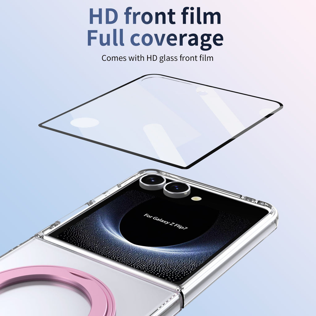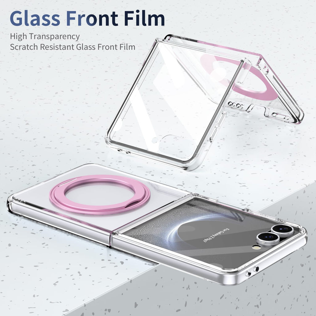 Brand New Galaxy Z Flip 7 Clear MagSafe Case with Built-in Tempered Glass, 360° Rotating Stand and Wireless Charging Support