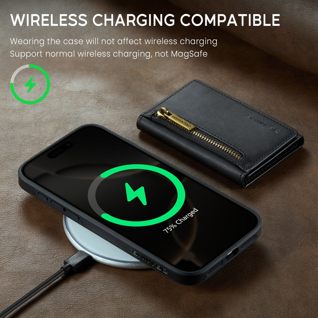 High quality DG.MING iPhone 16 Pro Max Case features a two-in-one design with a phone case and a mini wallet that can be attached together by strong magnetism. Also it supports magsafe wireless charging.