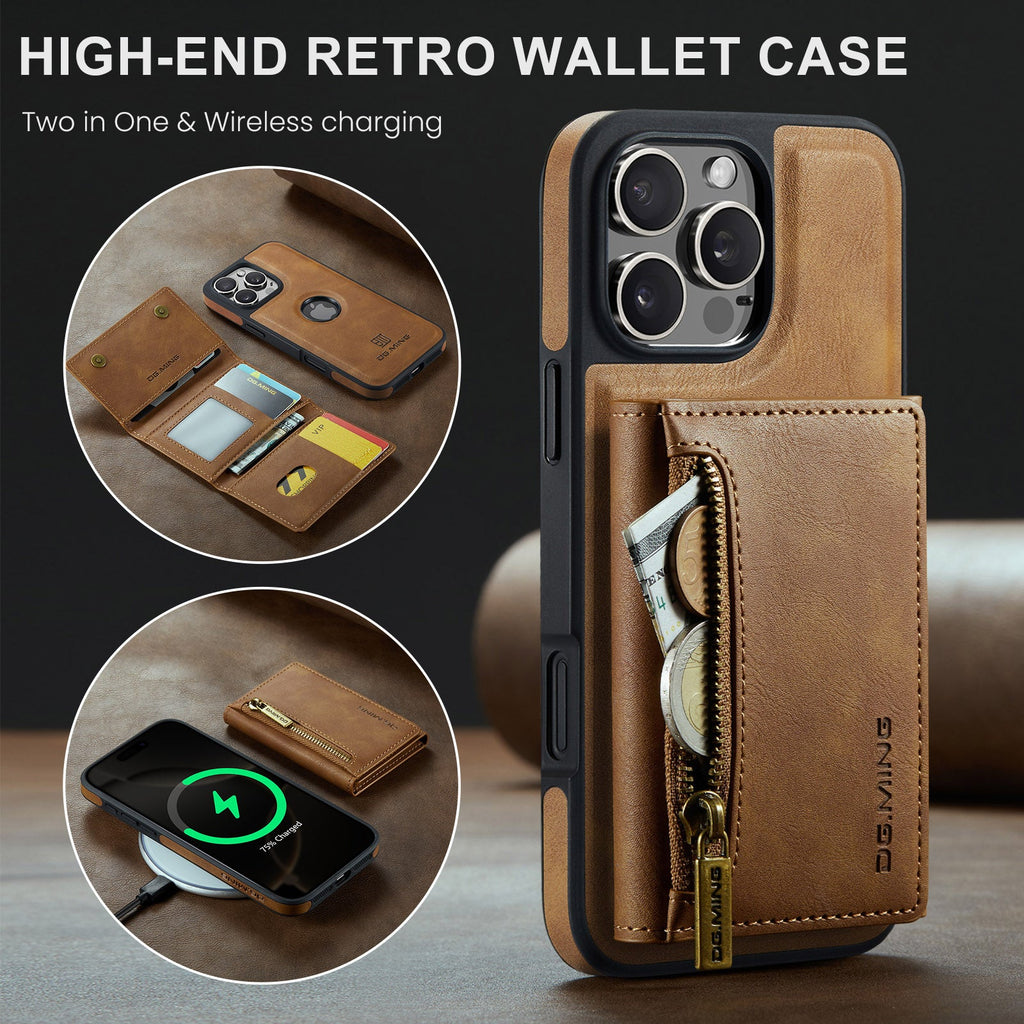 High quality DG.MING iPhone 16 Pro Max Case features a two-in-one design with a phone case and a mini wallet that can be attached together by strong magnetism. Also it supports magsafe wireless charging.