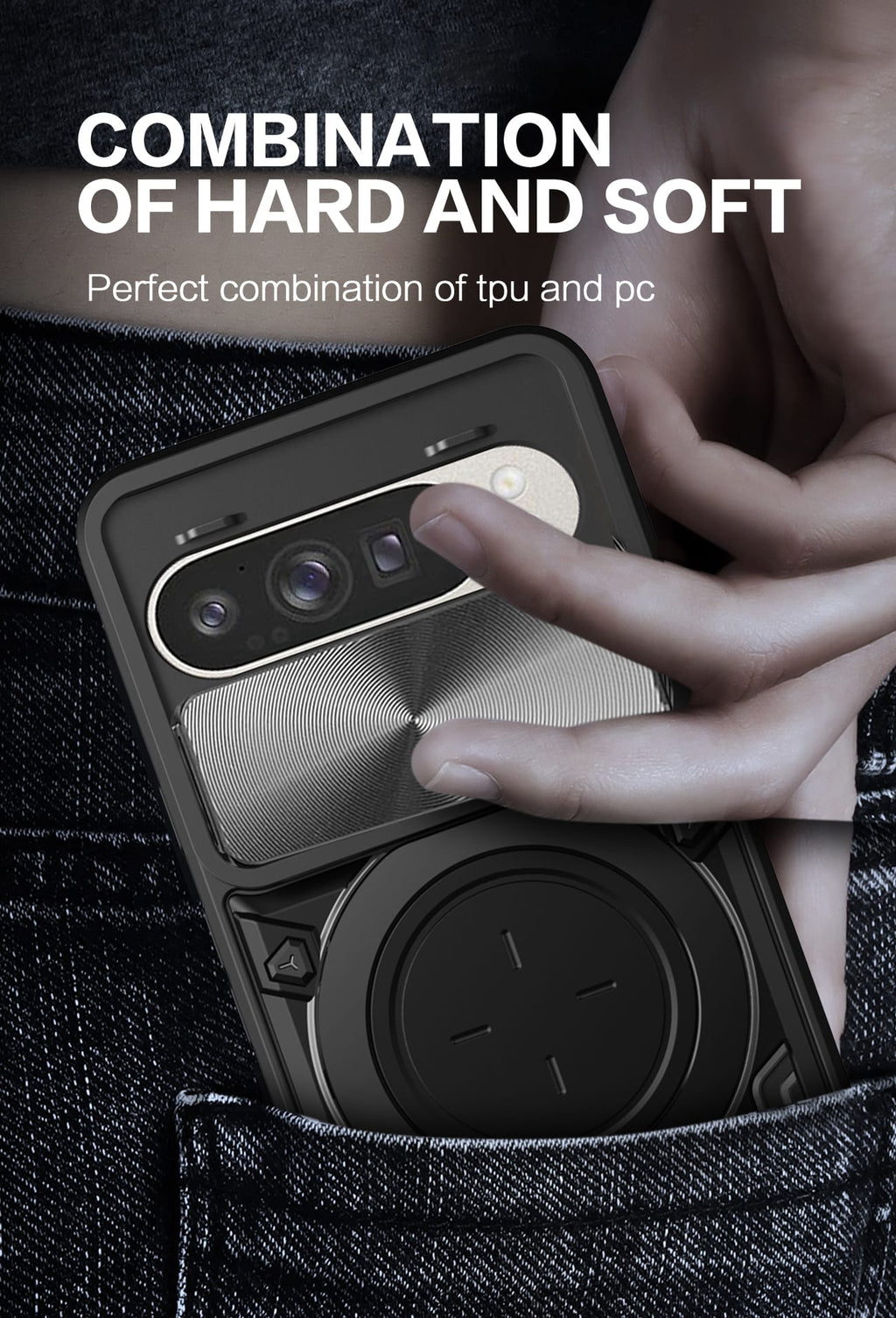 Add bold style and reliable protection to your phone with this Rugged Armor Ring Case, specially designed for the Google Pixel 10. Featuring a CD-textured sliding camera cover, built-in metal ring stand, and shock-resistant design, this case is perfect for users who need function and toughness — all in one.