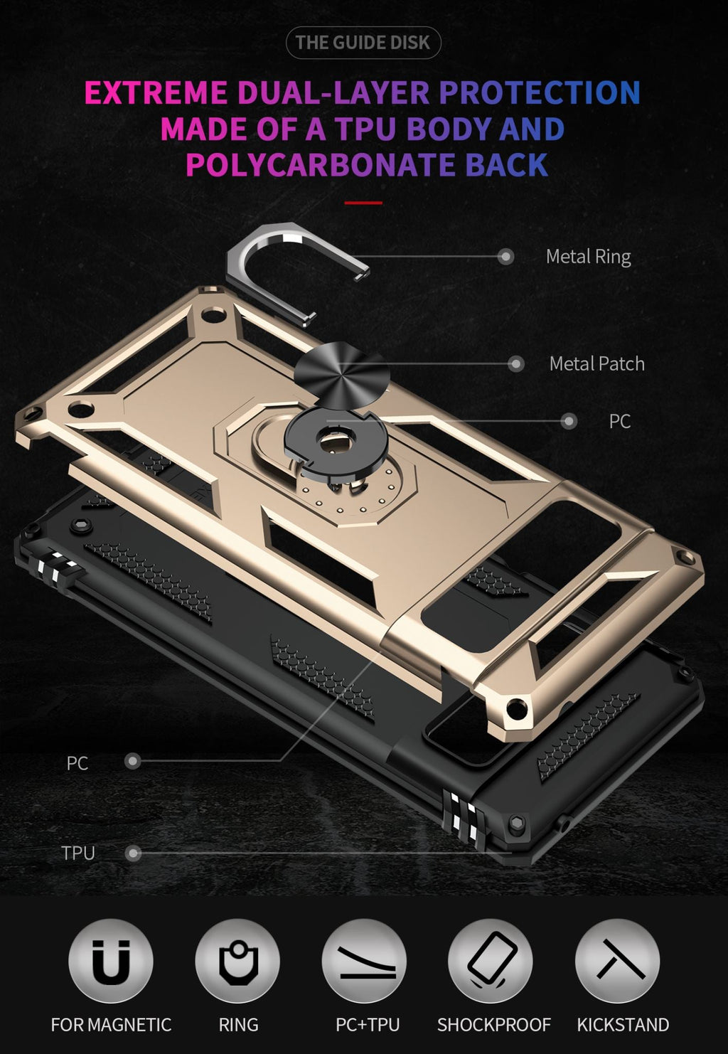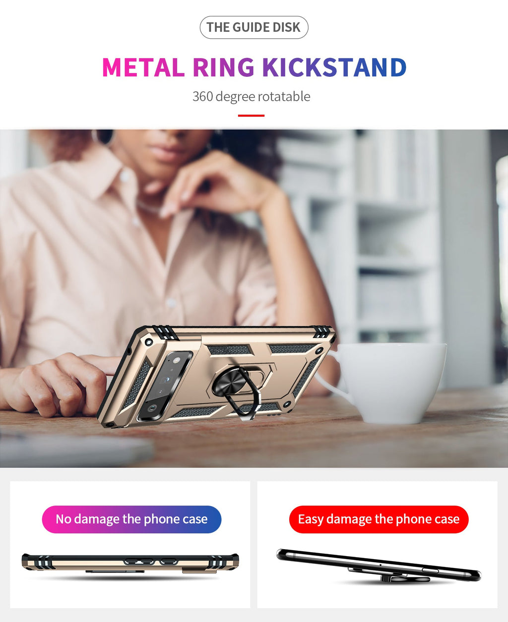 360 degree rotatable aluminum alloy ring kickstand on the Google Pixel 6 Pro Case allows for the optimal viewing position