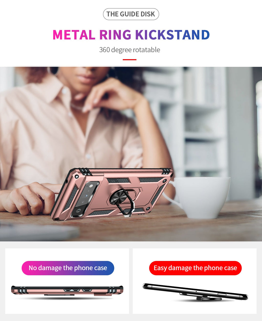 360 degree rotatable aluminum alloy ring kickstand on the Google Pixel 6 Pro Case allows for the optimal viewing position