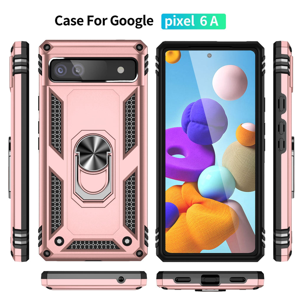 Brand New Premium Quality Heavy Duty Military Armour Kickstand Rugged Google Pixel 6a Case With 360 Degree Rotatable Ring Grip Holder And Metal Patch