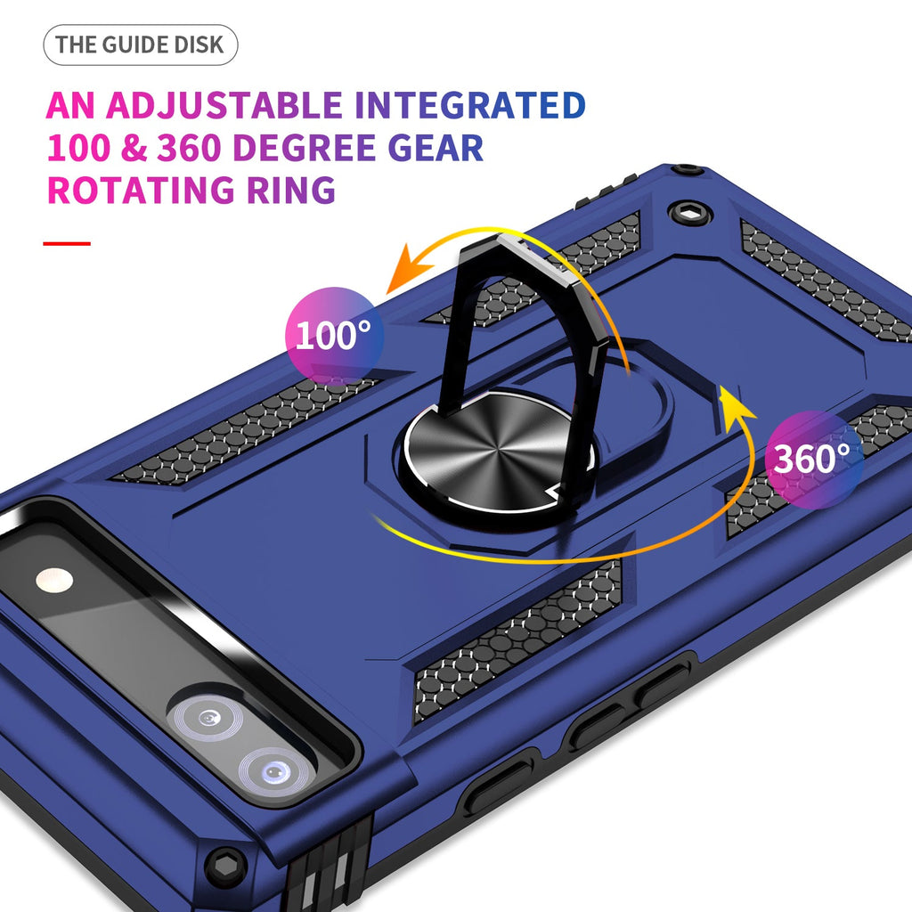 Brand New Premium Quality Heavy Duty Military Armour Kickstand Rugged Google Pixel 6a Case With 360 Degree Rotatable Ring Grip Holder And Metal Patch