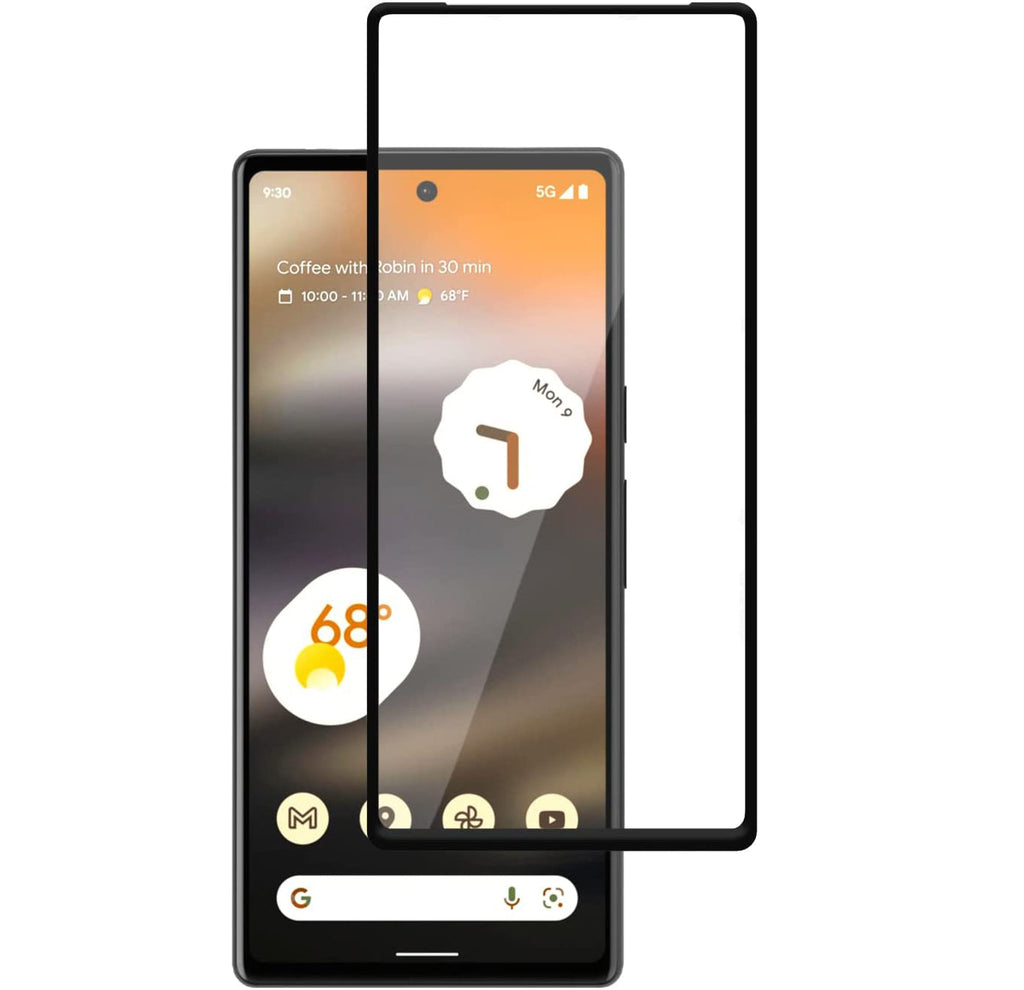 This full coverage Google Pixel 6a Glass Screen Protector fully covers your phone from edge to edge accompanied with a colored trimmed frame. The Google Pixel 6a Glass Screen Protector is manufactured from the highest quality ballistic oleophobic tempered glass.