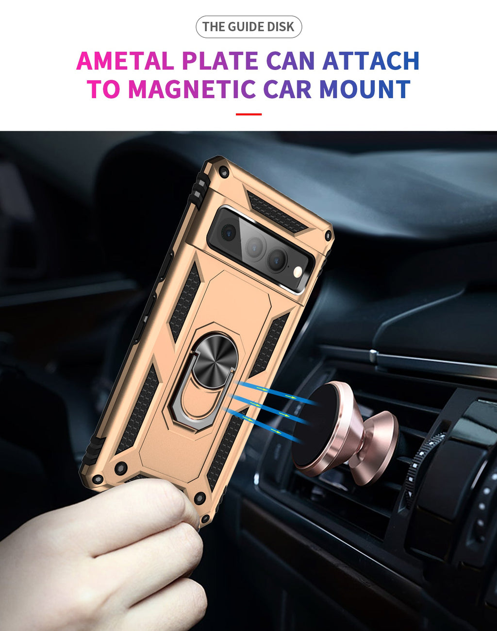 Premium Quality Heavy Duty Military Armour Kickstand Rugged Google Pixel 7 Pro Case With 360 Degree Rotatable Ring Grip Holder And Metal Patch