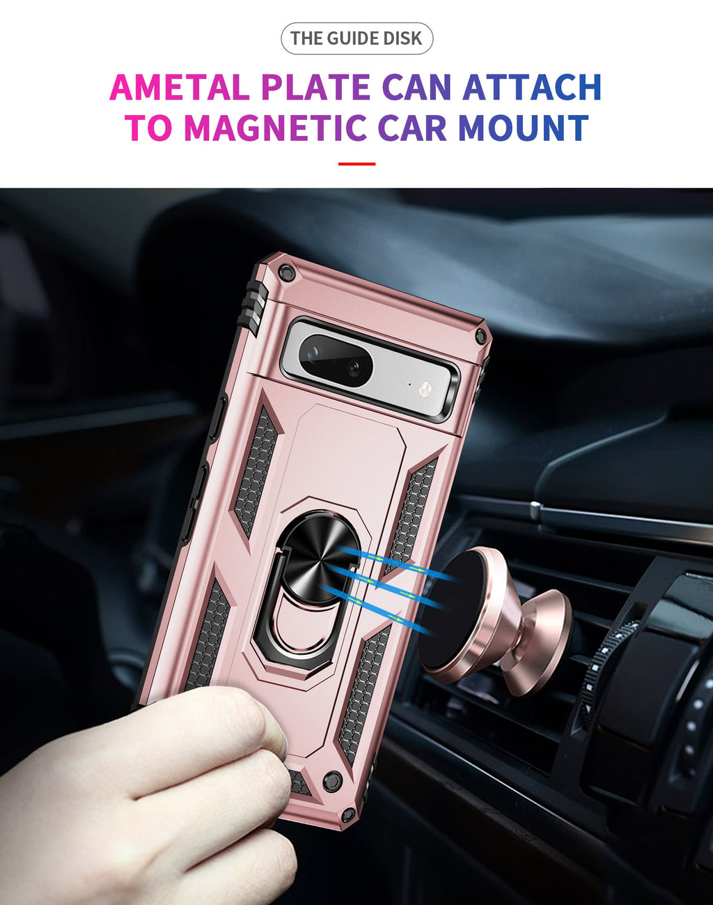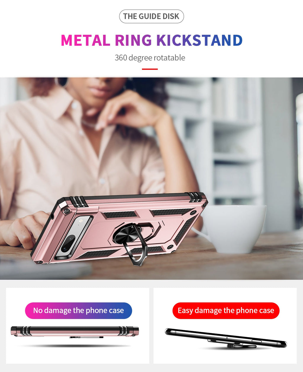 Premium Quality Heavy Duty Military Armour Kickstand Rugged Google Pixel 7a Case With 360 Degree Rotatable Ring Grip Holder And Metal Patch