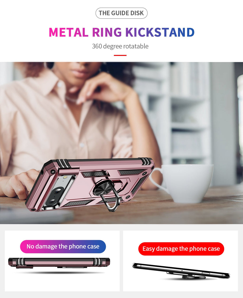 360 degree rotatable aluminum alloy ring kickstand on Google Pixel 8 Case allows for optimal viewing position
