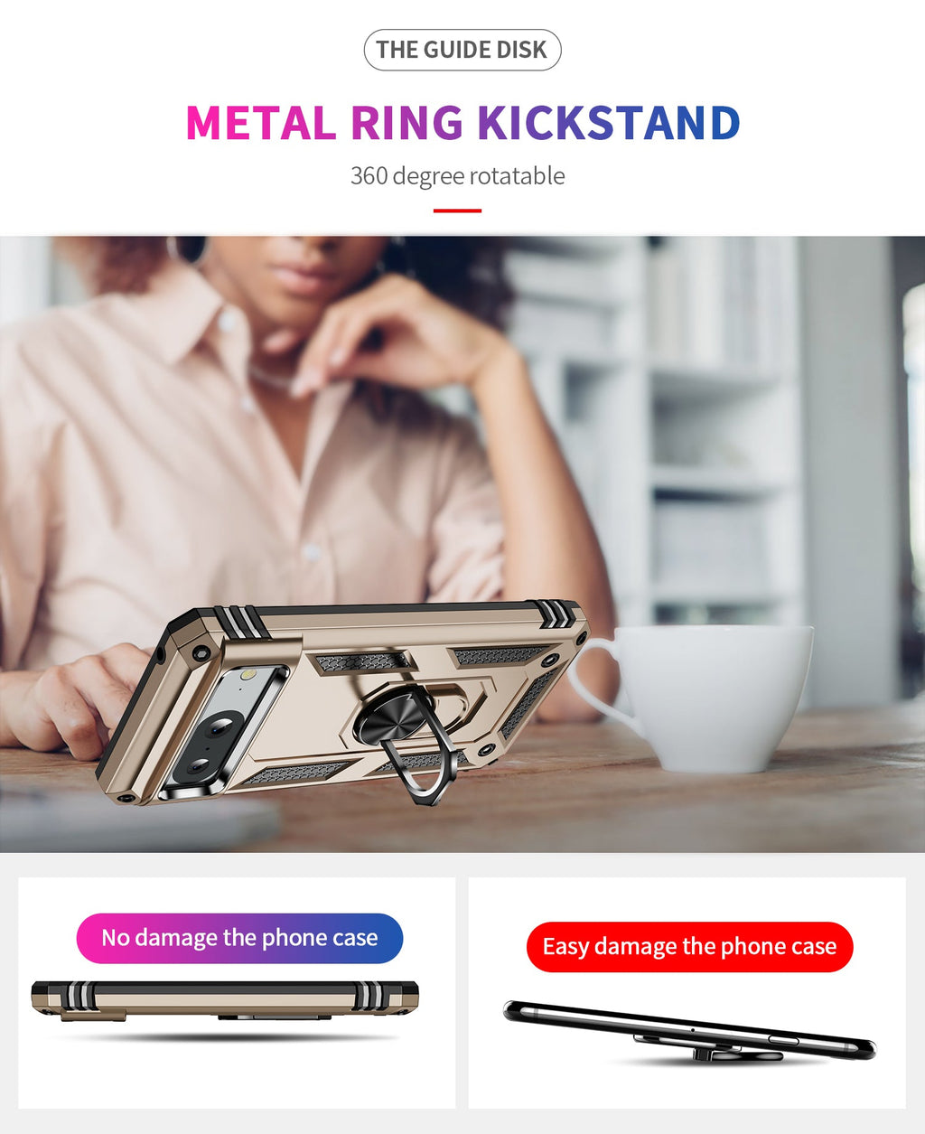 360 degree rotatable aluminum alloy ring kickstand on Google Pixel 8 Case allows for optimal viewing position