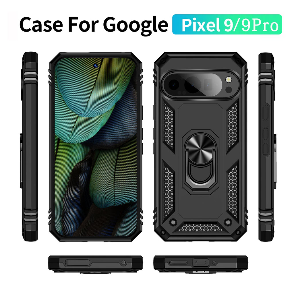 Quality Heavy Duty Military Armour Kickstand Rugged Google Pixel 9 Case With 360 Degree Rotatable Ring