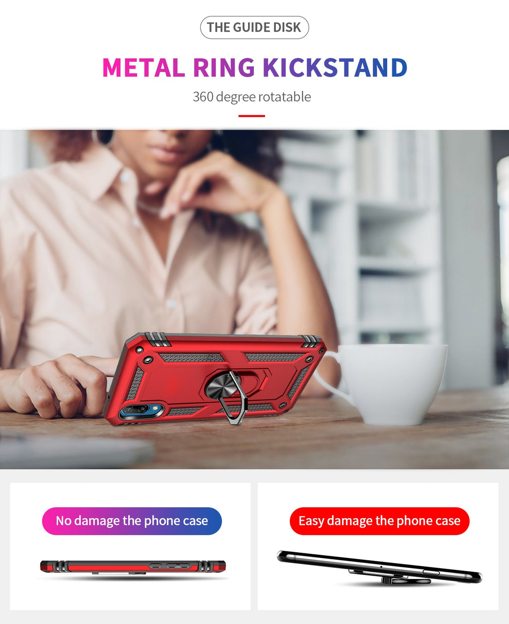 360 degree rotatable aluminum alloy ring kickstand on the Huawei Y6 Pro 2019 Case allows for the optimal viewing position