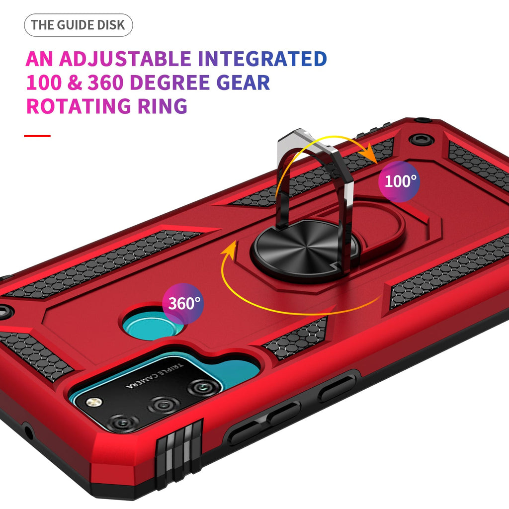 Brand New Premium Quality Heavy Duty Military Armour Kickstand Rugged Huawei Y6p Case With 360 Degree Rotatable Ring Grip Holder And Metal Patch
