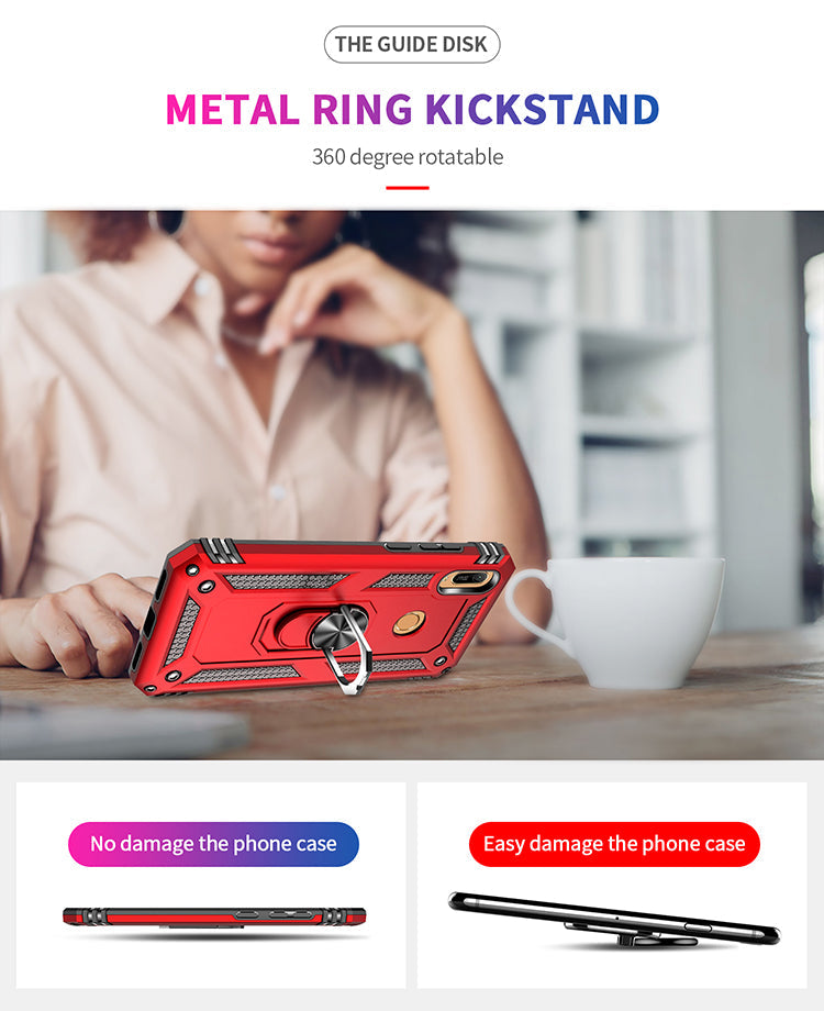 360 degree rotatable aluminum alloy ring kickstand on the Huawei Y6s Case allows for the optimal viewing position