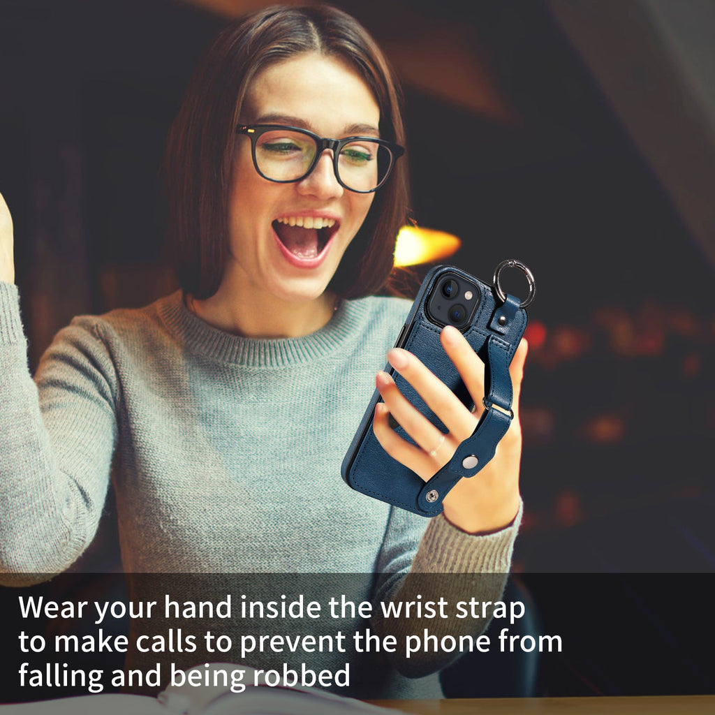 Quality PU Leather Single Card iPhone 13 Case with Hand Strap