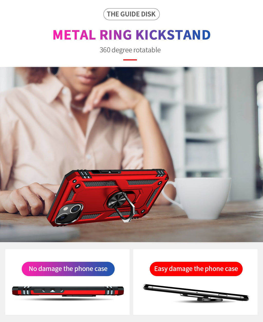 360 degree rotatable aluminum alloy ring kickstand on the iPhone 13 Case allows for the optimal viewing position