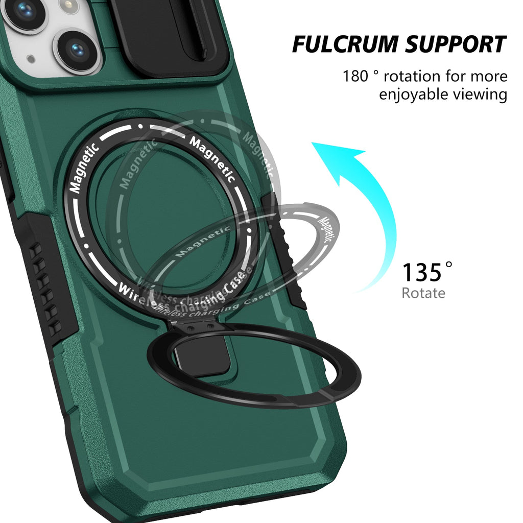 Quality MagSafe Compatible Magnetic Ring Heavy Duty Kickstand iPhone 13 Case with Rear Camera Sliding Cover