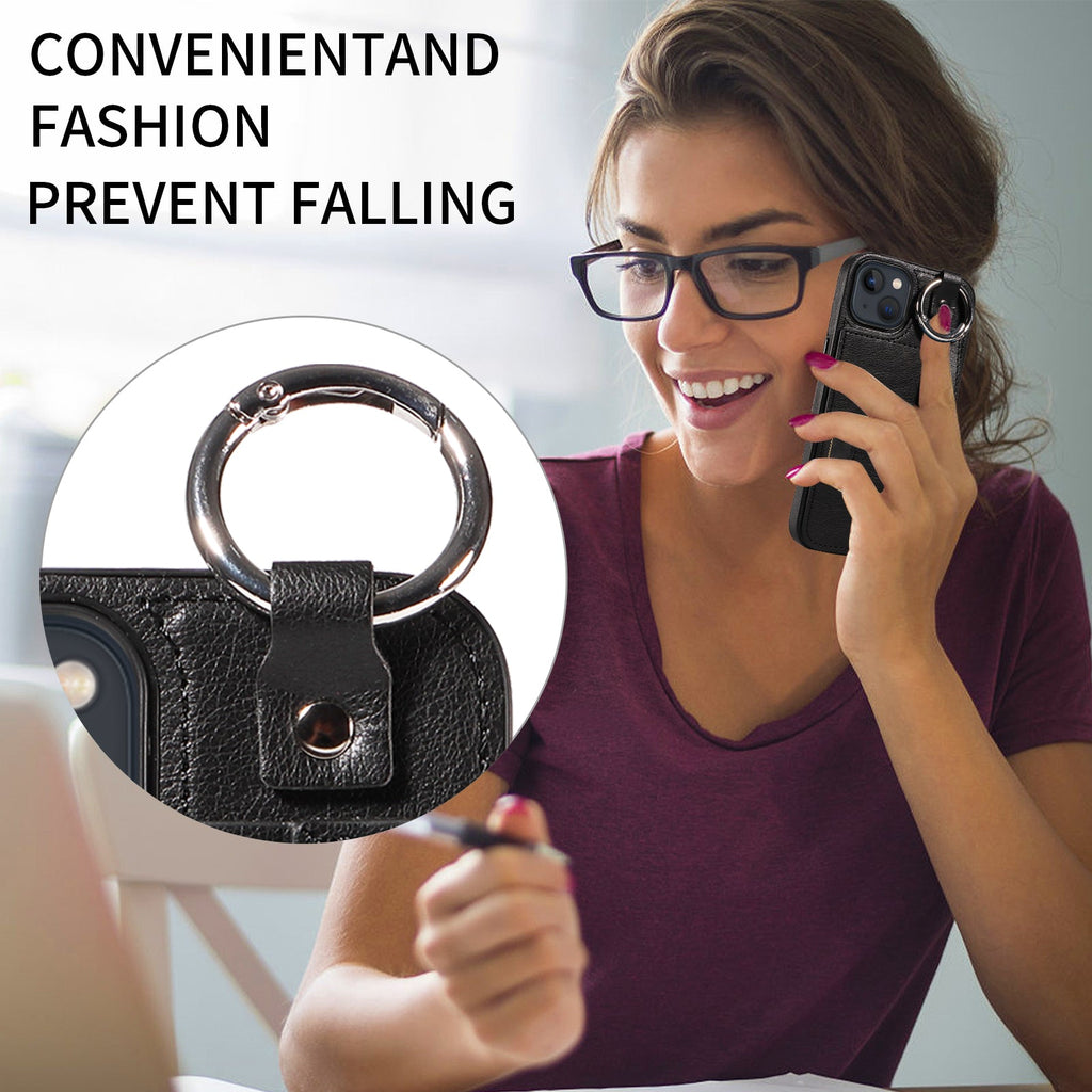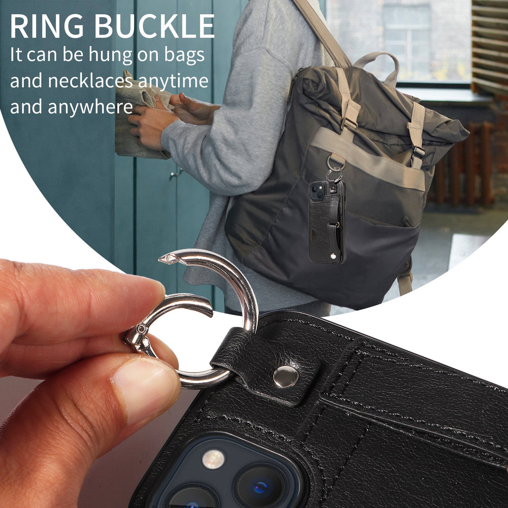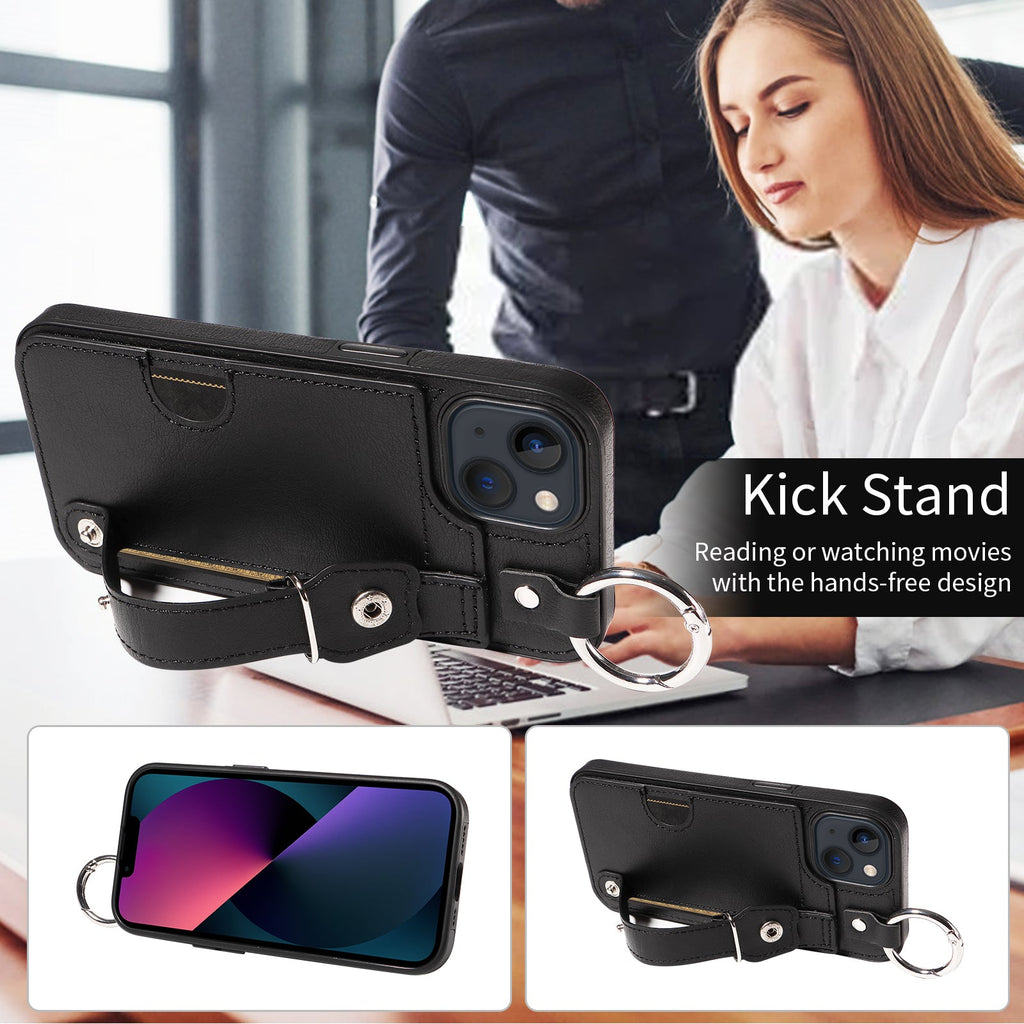 Quality PU Leather Single Card iPhone 13 Case with Hand Strap