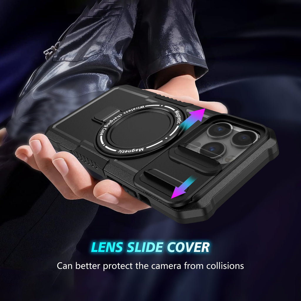Quality MagSafe Compatible Magnetic Ring Heavy Duty Kickstand iPhone 13 Pro Case with Rear Camera Sliding Cover