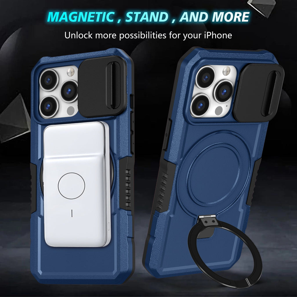 Quality MagSafe Compatible Magnetic Ring Heavy Duty Kickstand iPhone 13 Pro Case with Rear Camera Sliding Cover