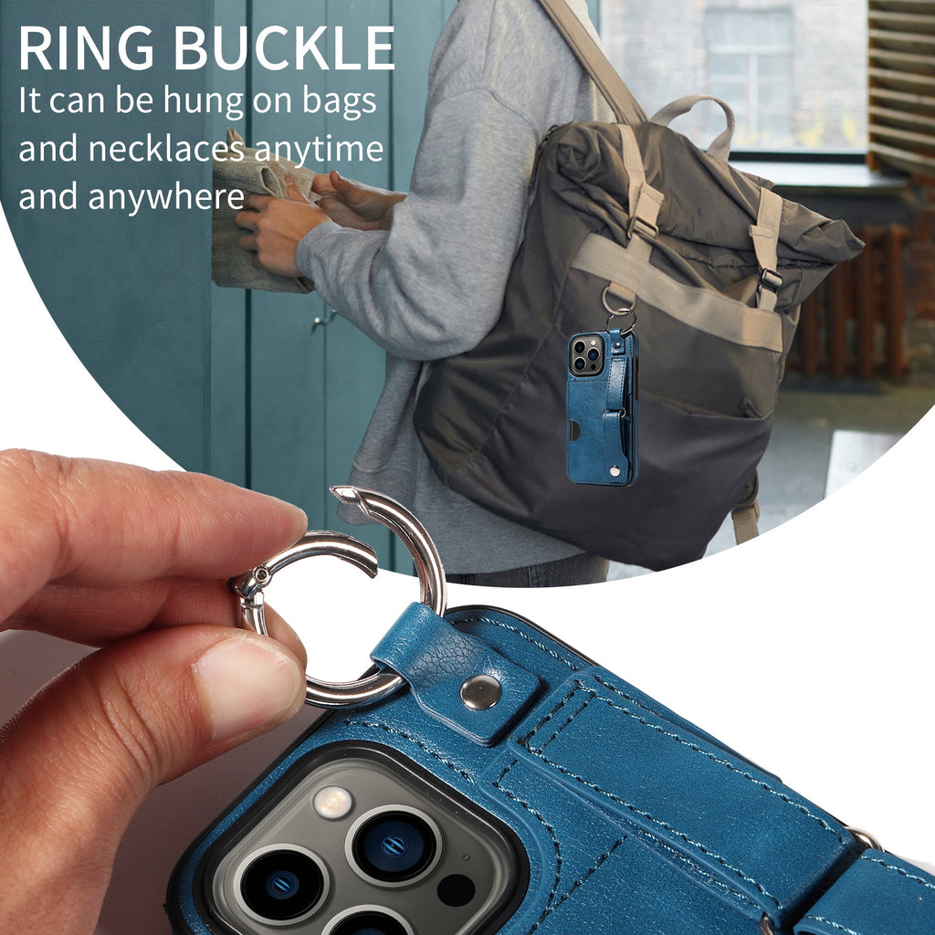 Quality PU Leather Single Card iPhone 13 Pro Case with Hand Strap