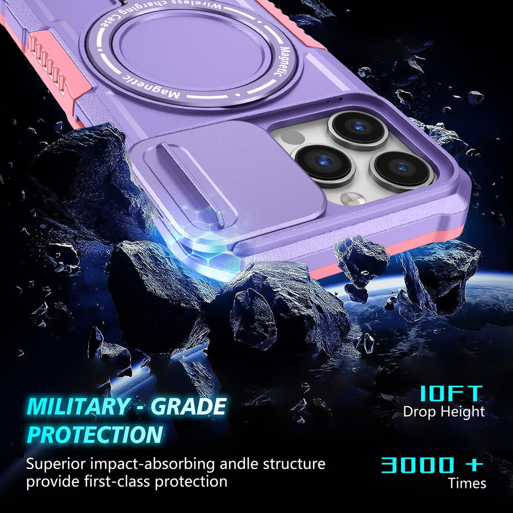 Quality MagSafe Compatible Magnetic Ring Heavy Duty Kickstand iPhone 13 Pro Case with Rear Camera Sliding Cover