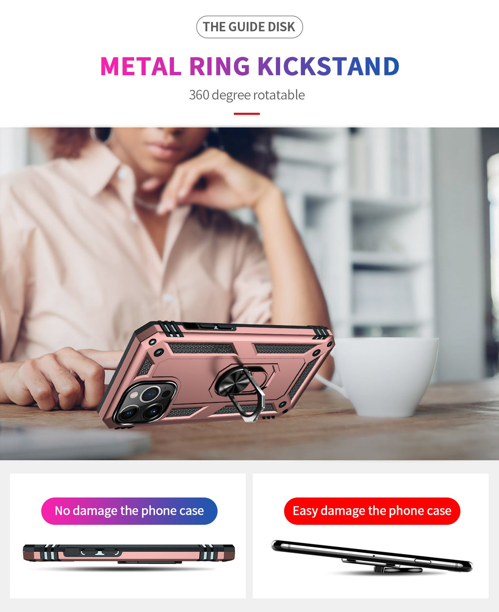 360 degree rotatable aluminum alloy ring kickstand on the iPhone 13 Pro Max Case allows for the optimal viewing position