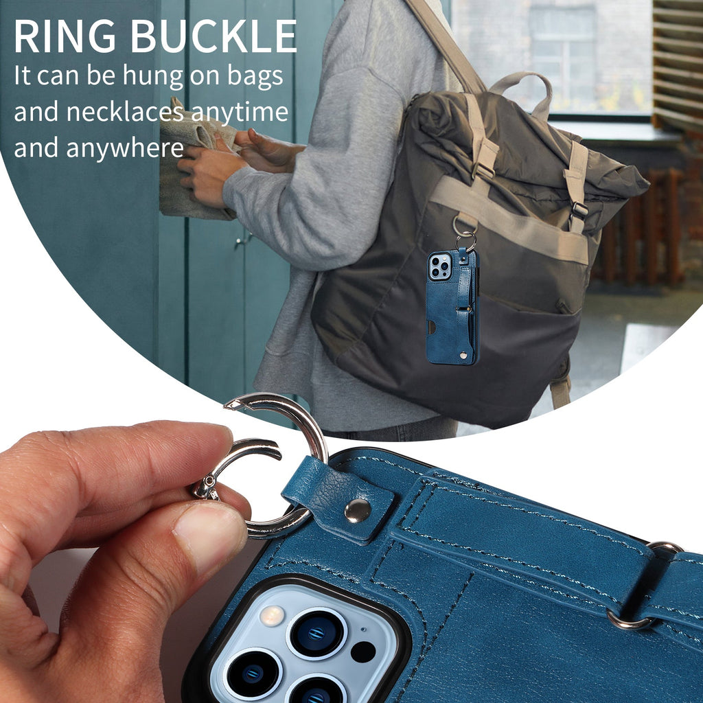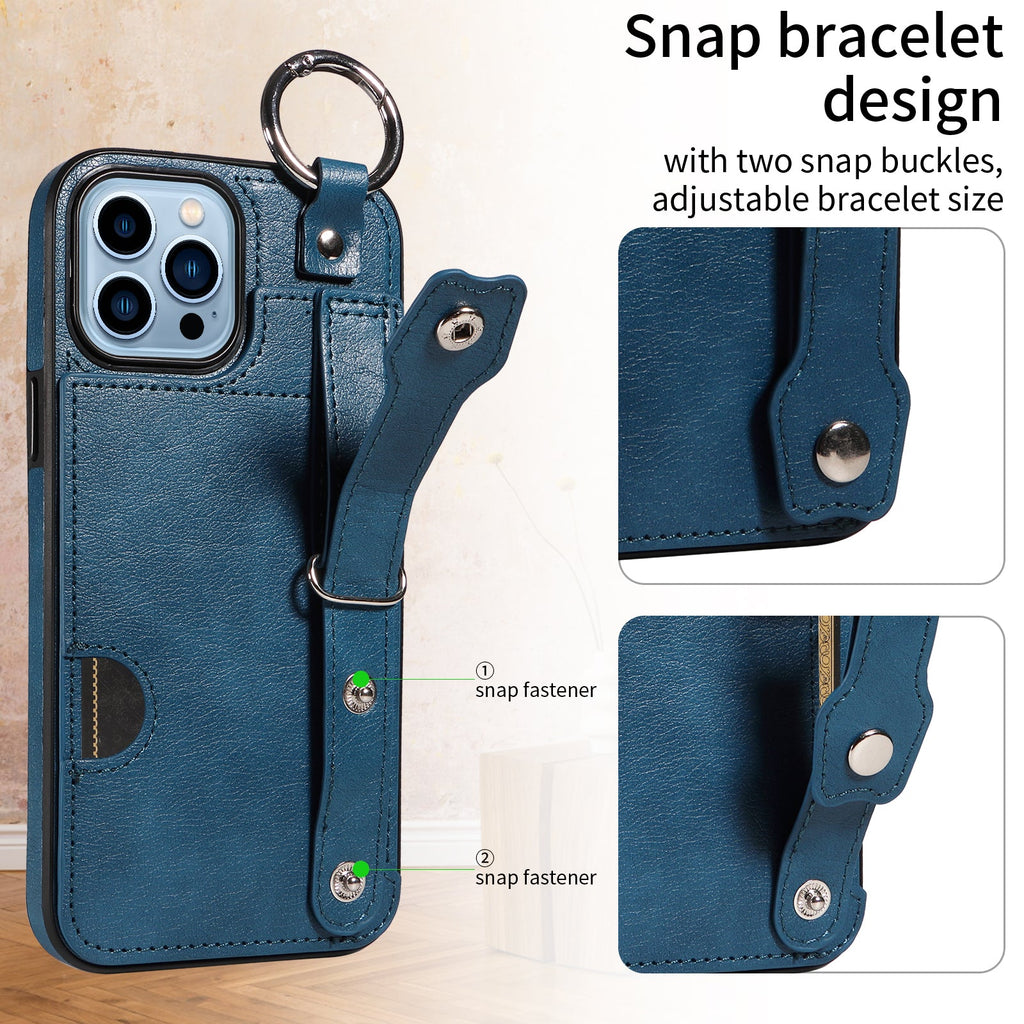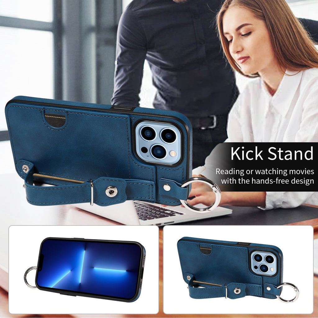 Quality PU Leather Single Card iPhone 13 Pro Max Case with Hand Strap