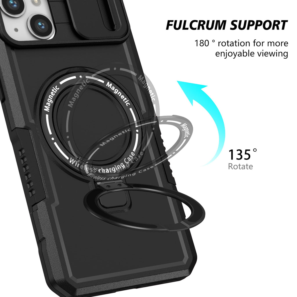 Quality MagSafe Compatible Magnetic Ring Heavy Duty Kickstand iPhone 14 Plus Case with Rear Camera Sliding Cover