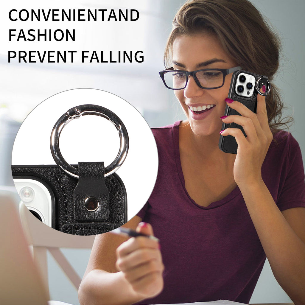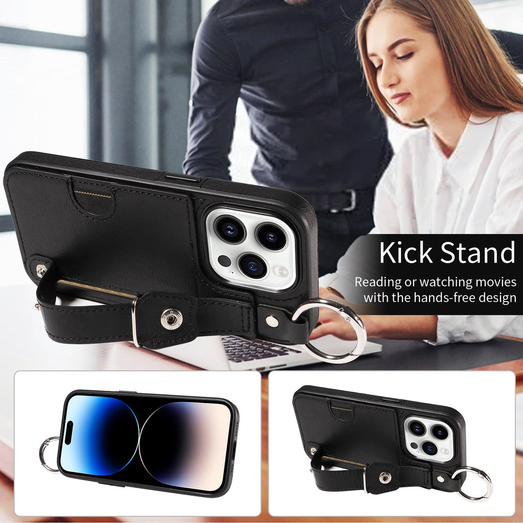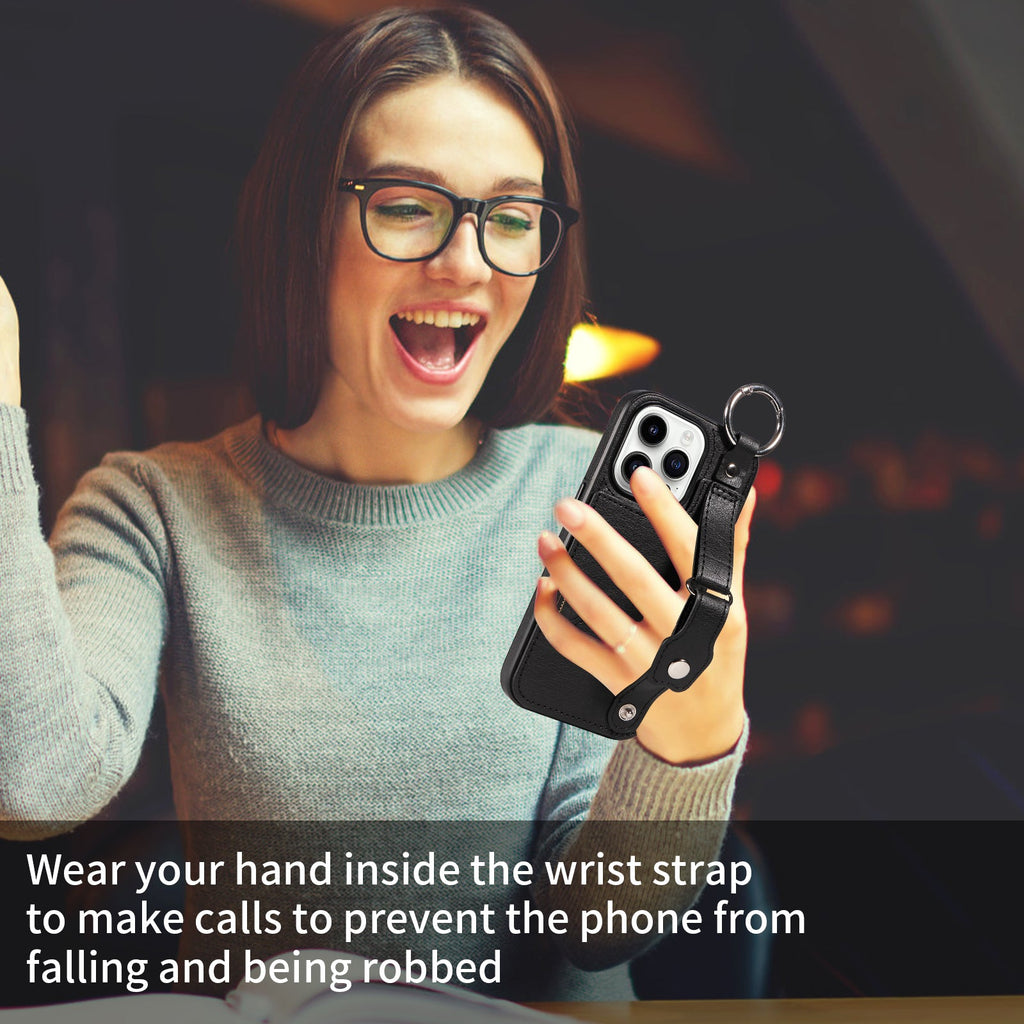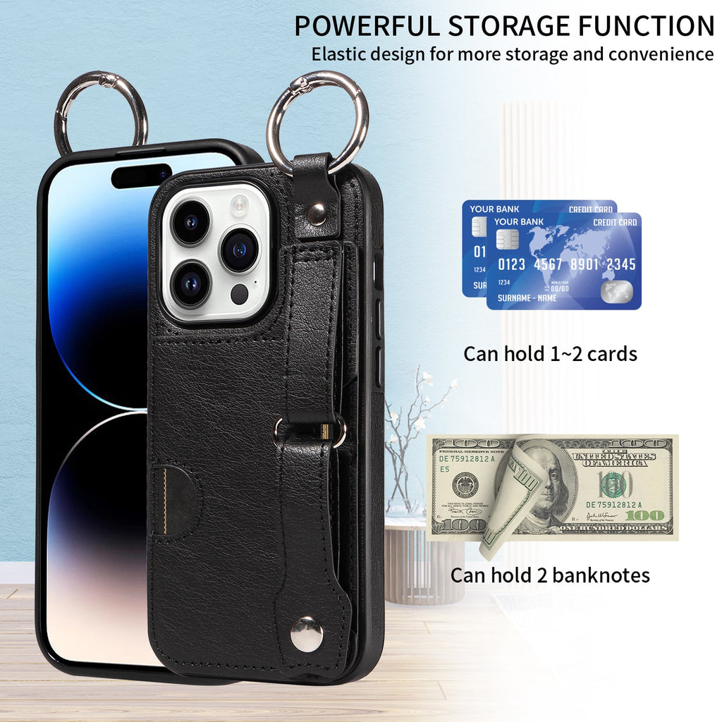 Quality PU Leather Single Card iPhone 14 Pro Case with Hand Strap