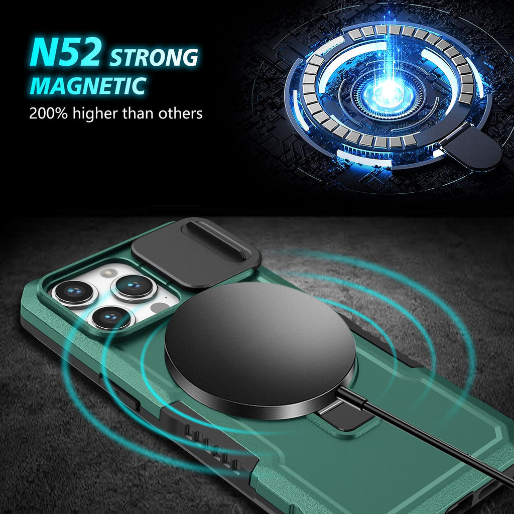 Quality MagSafe Compatible Magnetic Ring Heavy Duty Kickstand iPhone 14 Pro Case with Rear Camera Sliding Cover