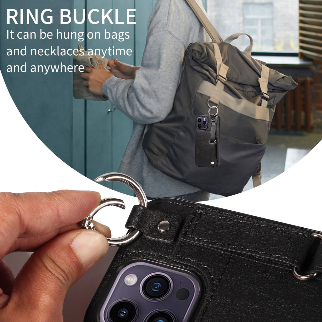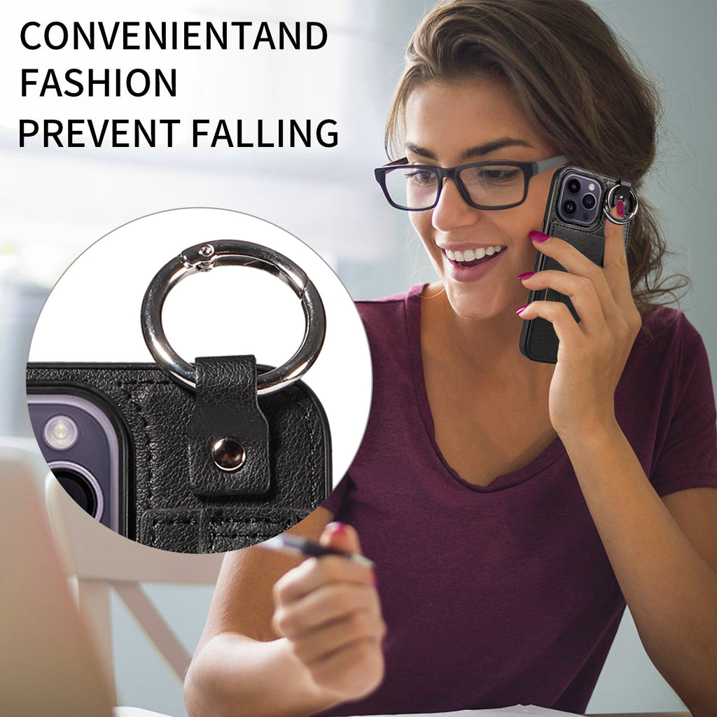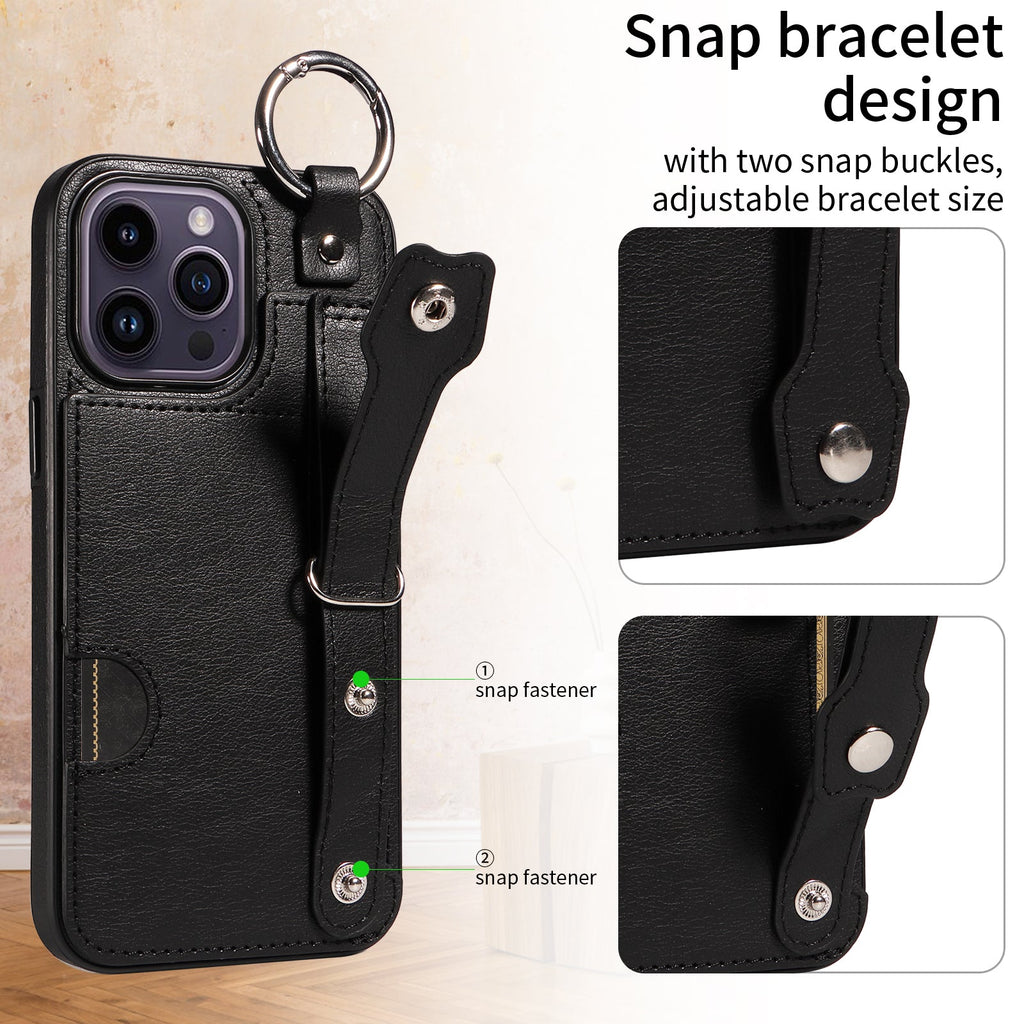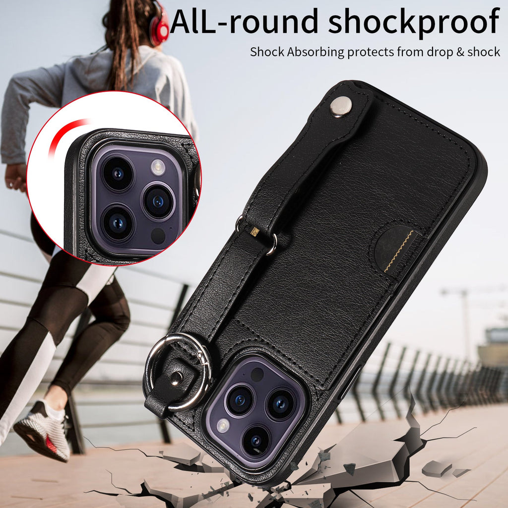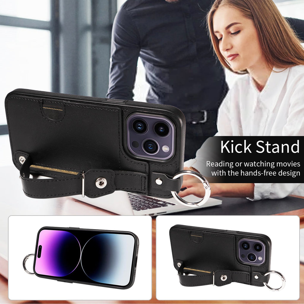 Quality PU Leather Single Card iPhone 14 Pro Max Case with Hand Strap