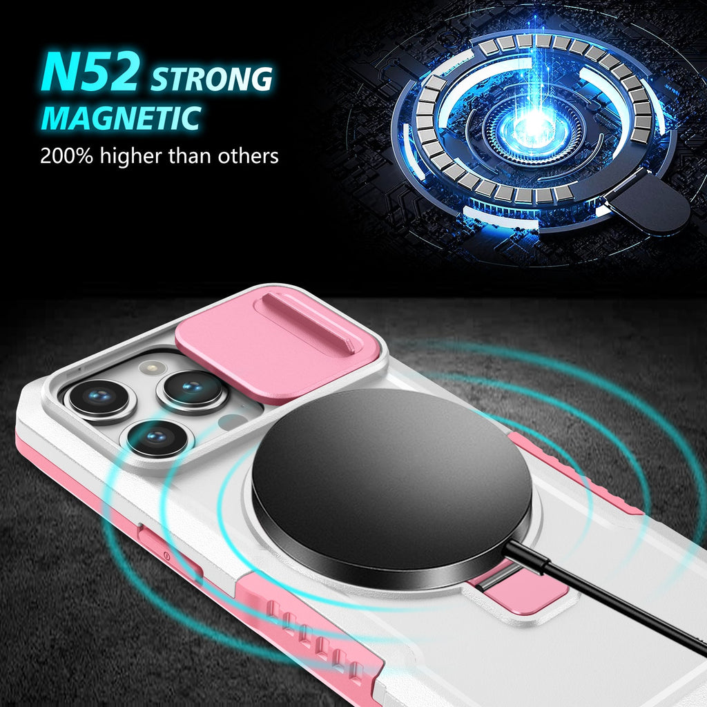Quality MagSafe Compatible Magnetic Ring Heavy Duty Kickstand iPhone 14 Pro Max Case with Rear Camera Sliding Cover