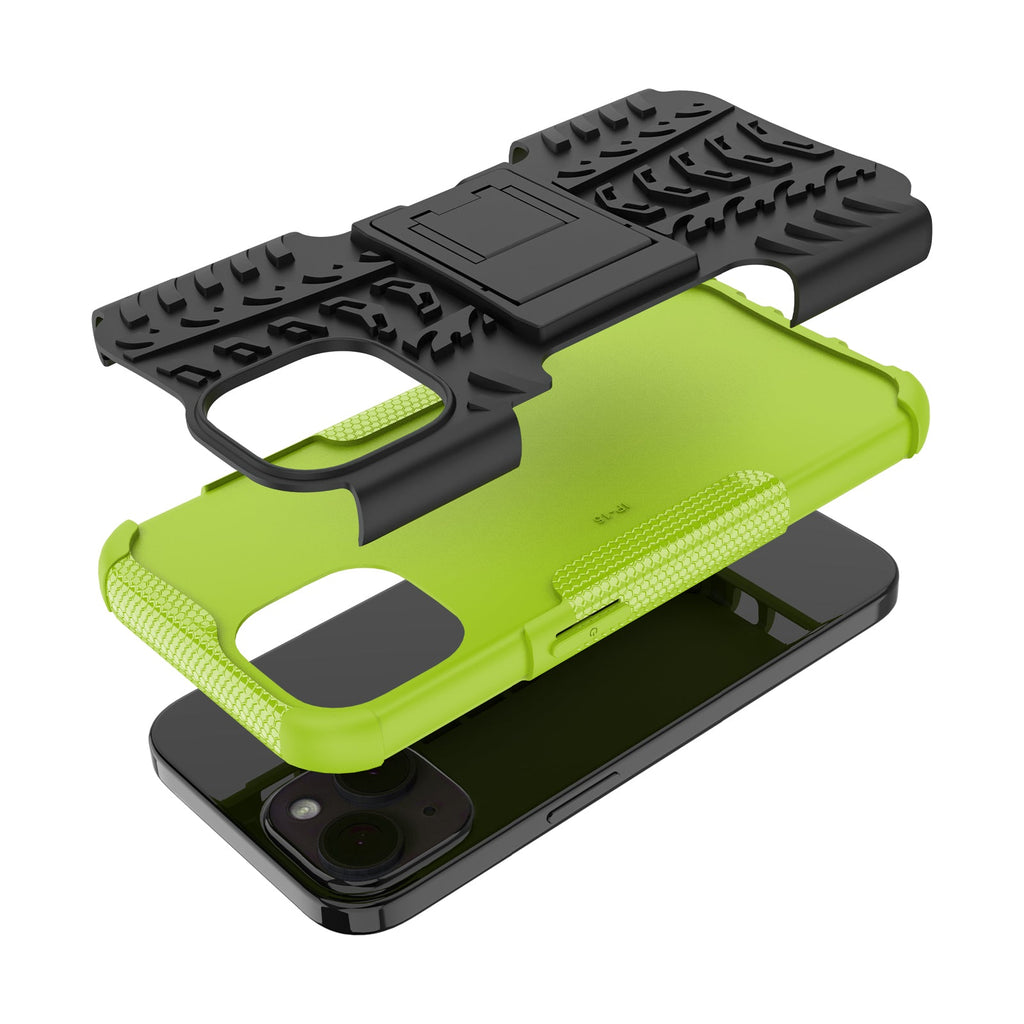 Protect your mobile phone with this heavy duty rugged iPhone 15 Case, comprised of an inner TPU case and an outer impact resistant exoskeleton.