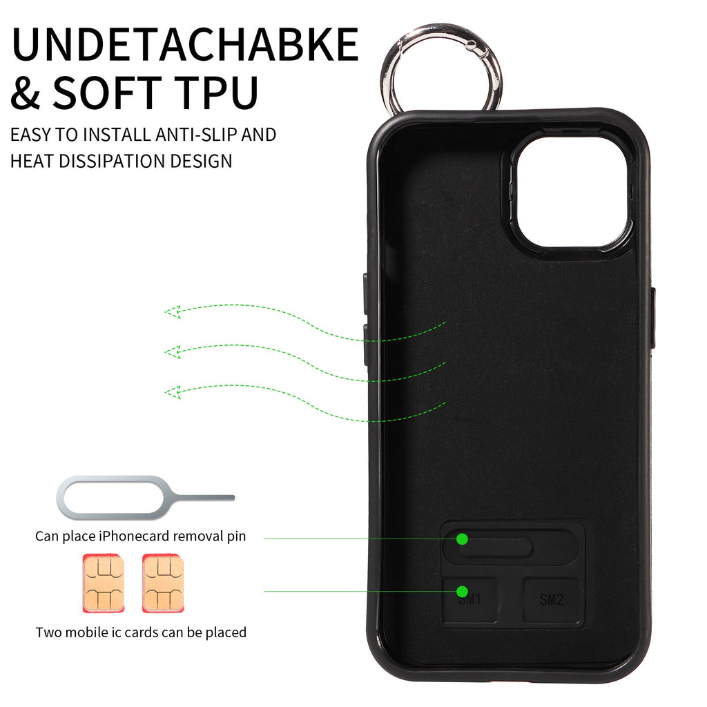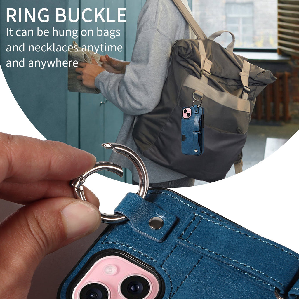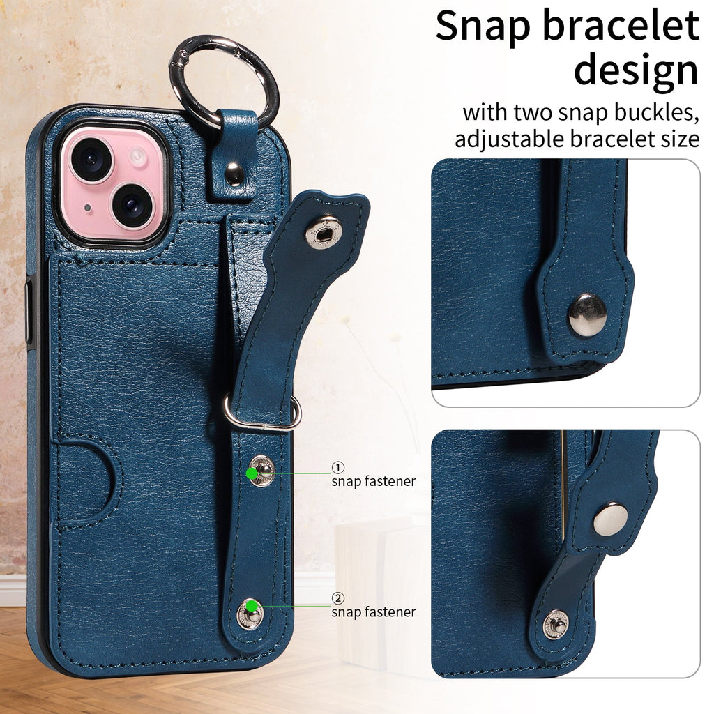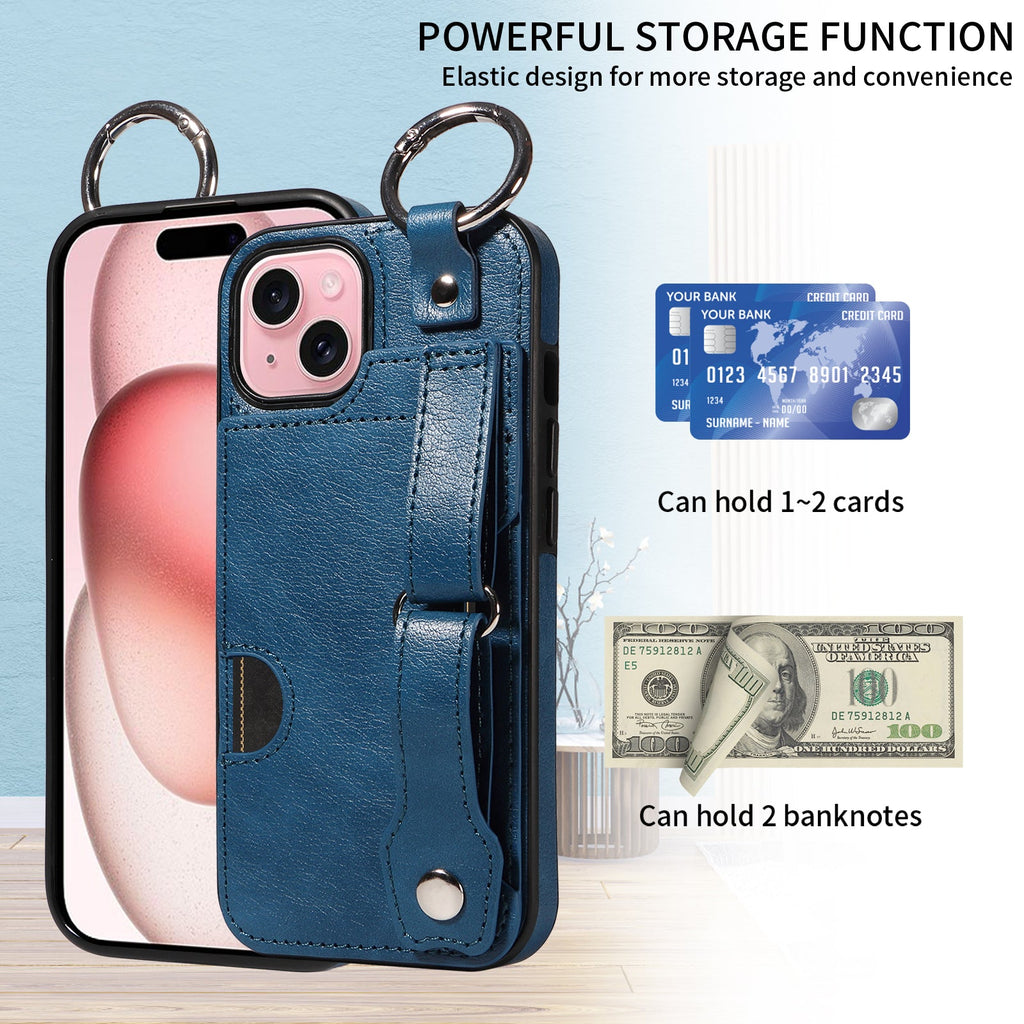 Quality PU Leather Single Card iPhone 15 Case with Hand Strap