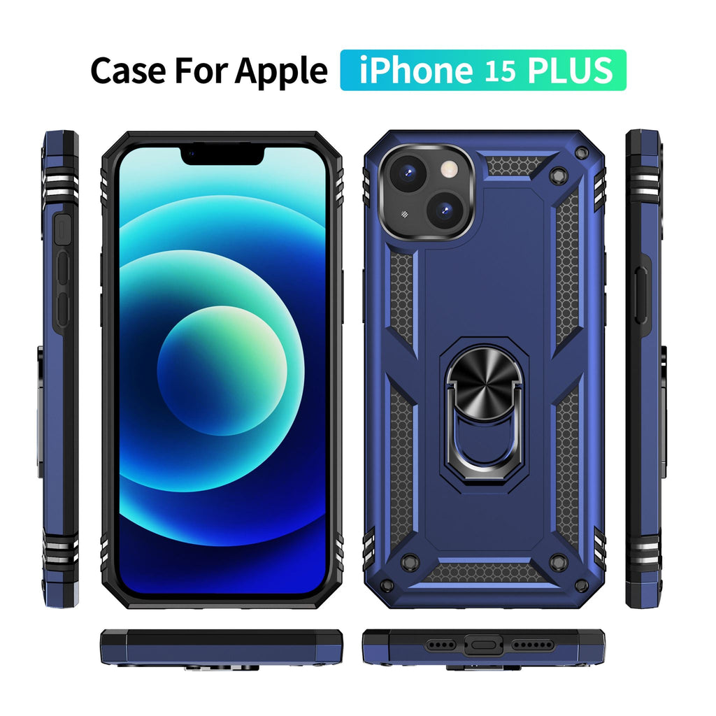 Quality Heavy Duty Military Armour Kickstand Rugged iPhone 15 Plus Case With 360 Degree Rotatable Ring