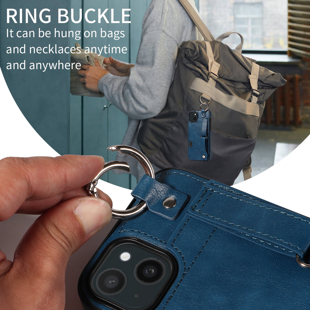 Quality PU Leather Single Card iPhone 15 Plus Case with Hand Strap