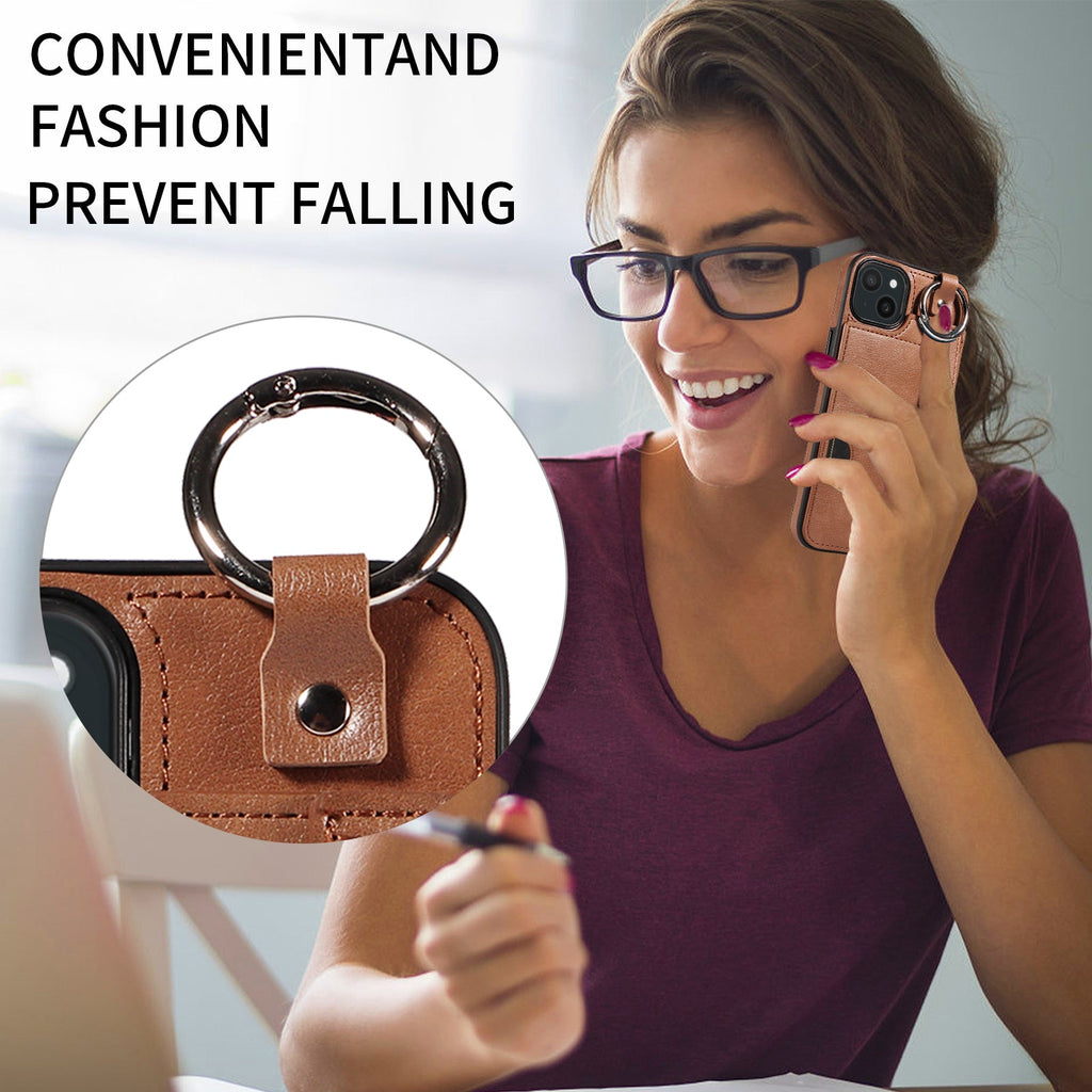 Quality PU Leather Single Card iPhone 15 Plus Case with Hand Strap