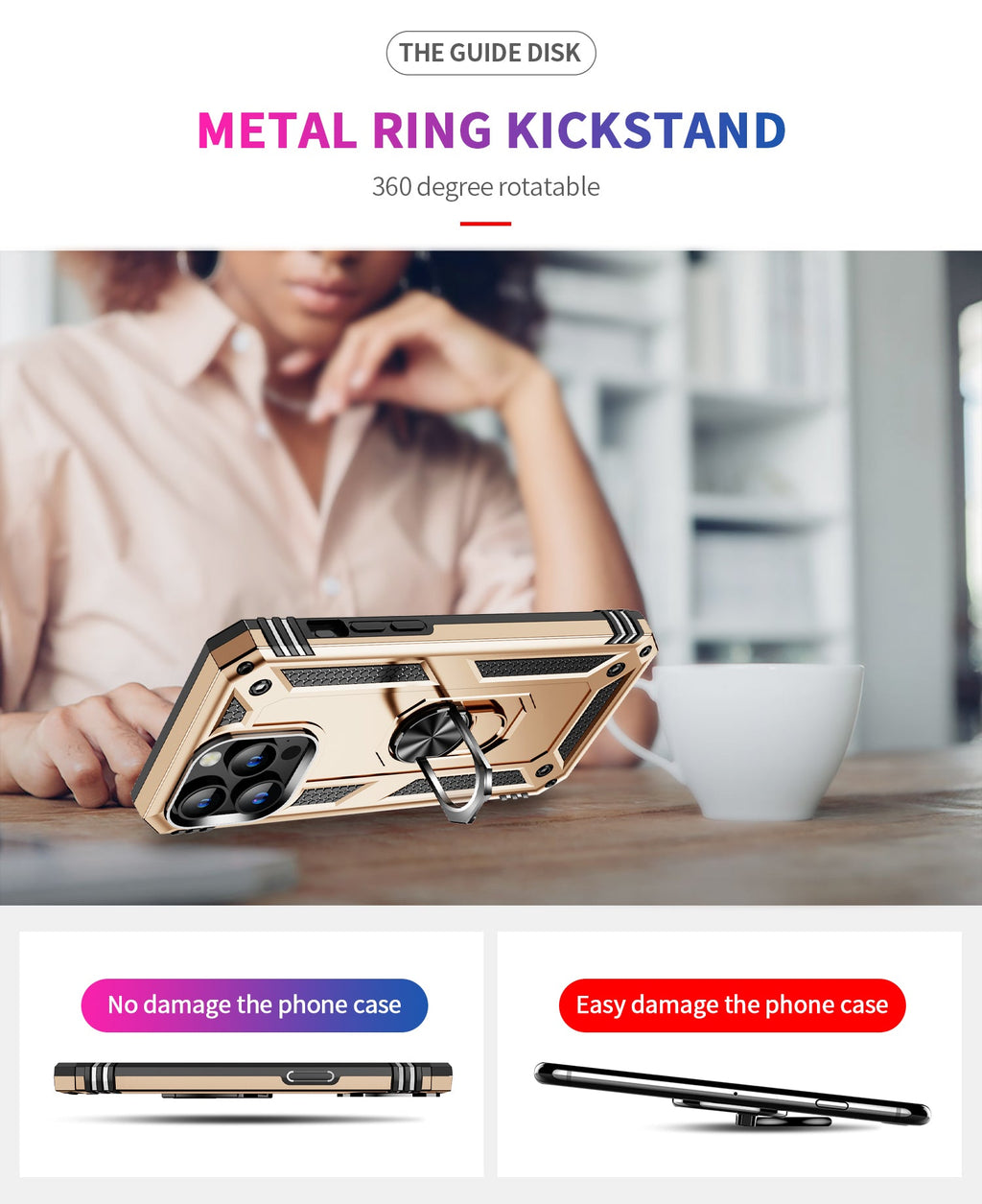 360 degree rotatable aluminum alloy ring kickstand on iPhone 15 Pro Case allows for optimal viewing position