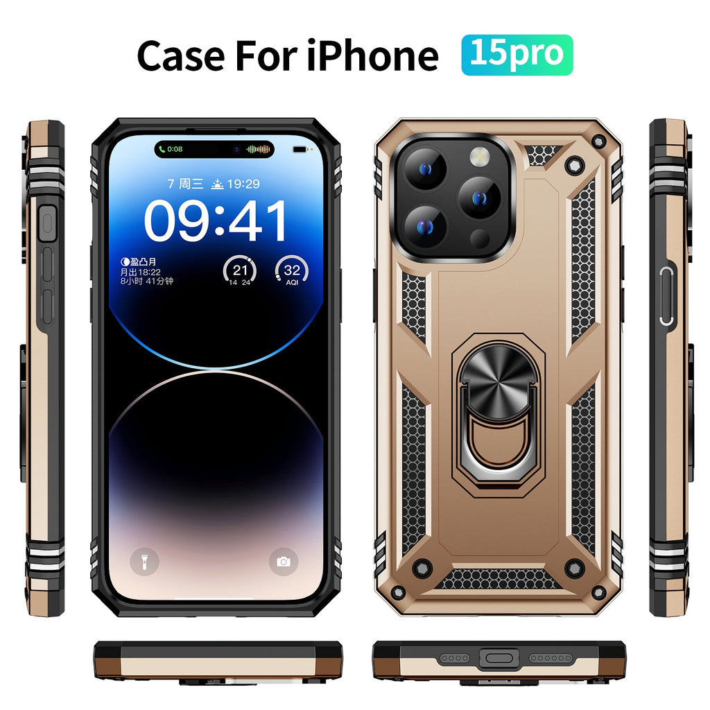 Quality Heavy Duty Military Armour Kickstand Rugged iPhone 15 Pro Case With 360 Degree Rotatable Ring