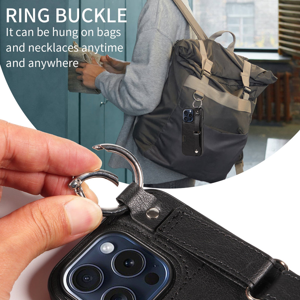 Ring buckle on the top can be used to hung the phone on bags