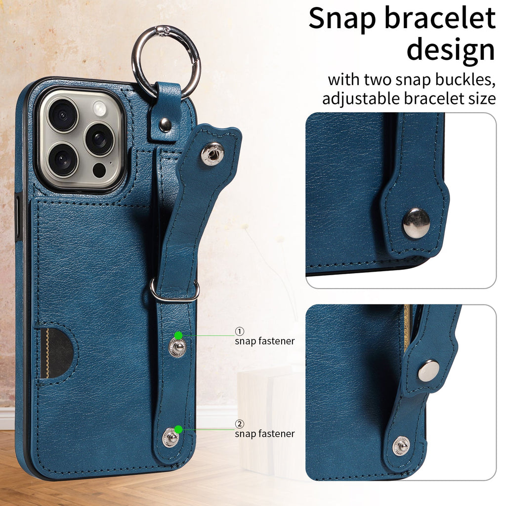 Quality PU Leather Single Card iPhone 15 Pro Max Case with Hand Strap