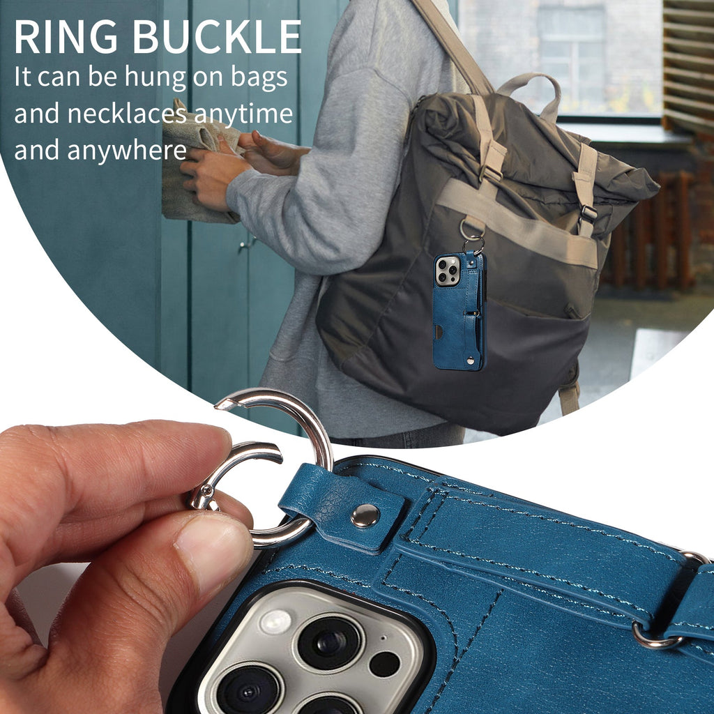 Ring buckle on the top can be used to hung the phone on bags