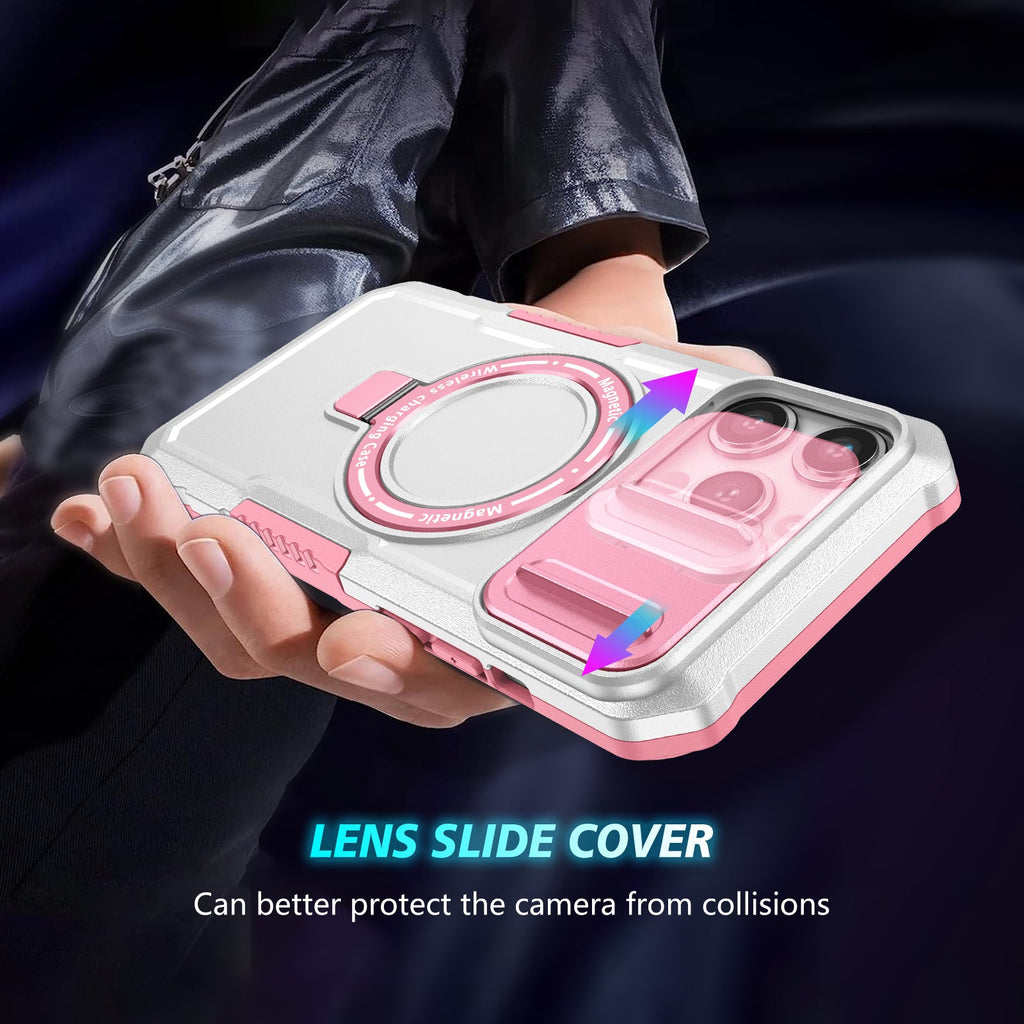 Quality MagSafe Compatible Magnetic Ring Heavy Duty Kickstand iPhone 15 Pro Max Case with Rear Camera Sliding Cover
