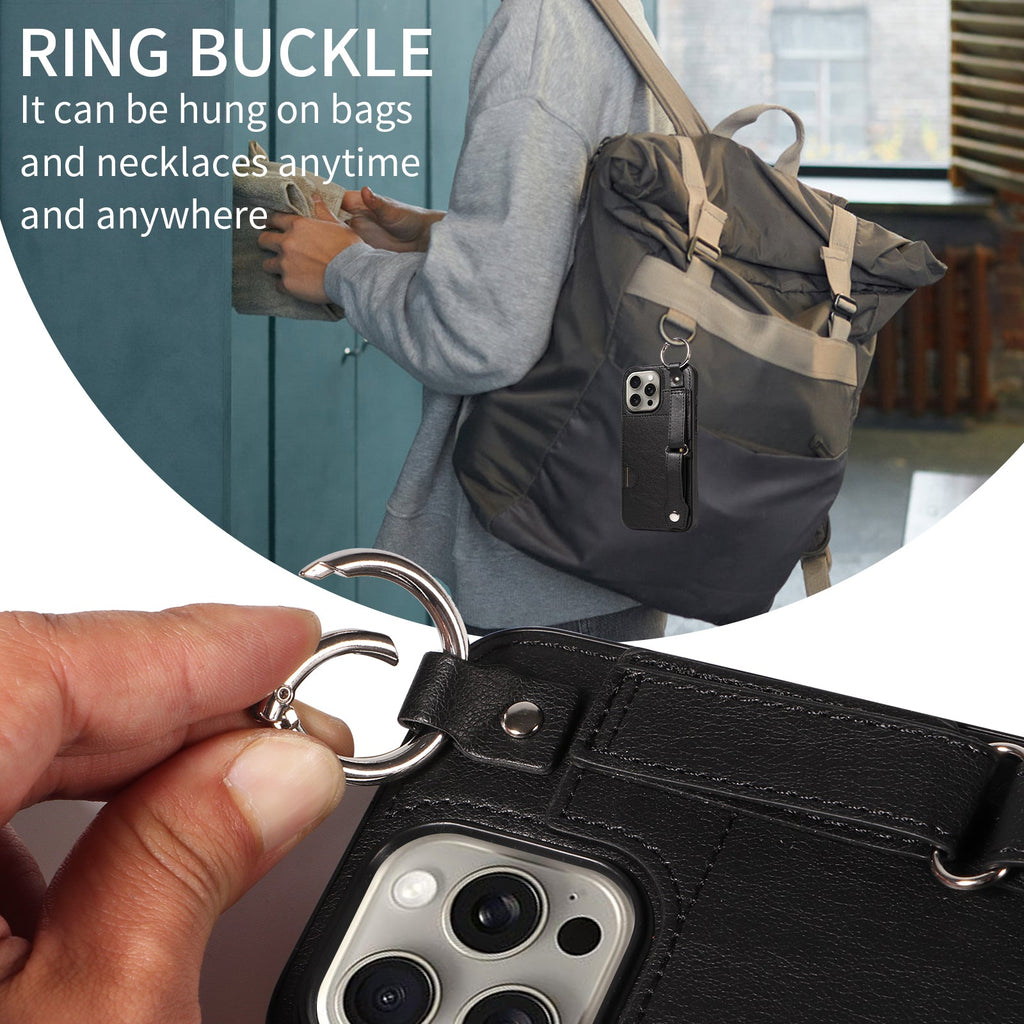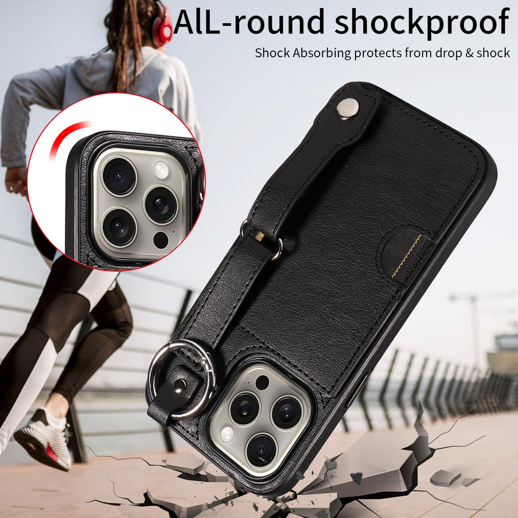 Quality PU Leather Single Card iPhone 15 Pro Max Case with Hand Strap