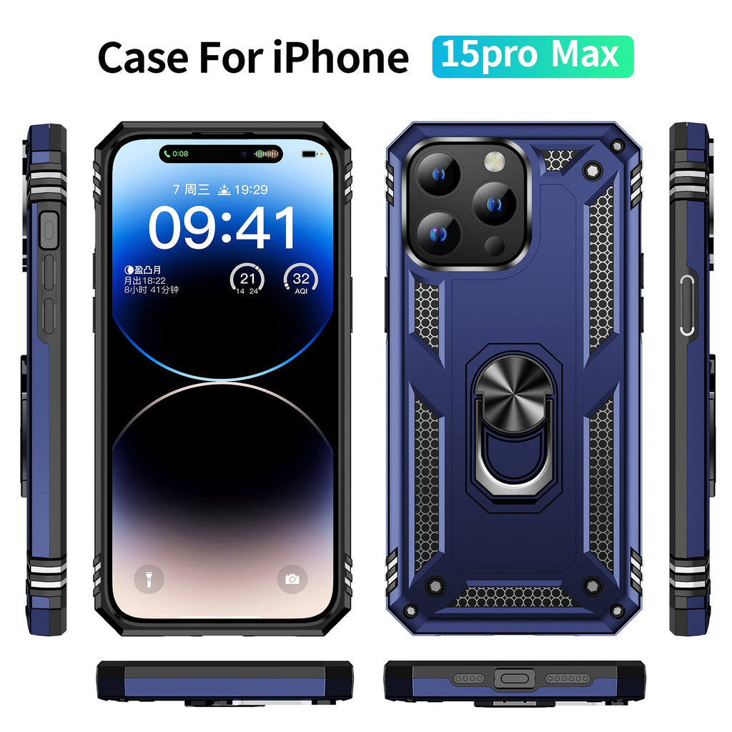 Quality Heavy Duty Military Armour Kickstand Rugged iPhone 15 Pro Max Case With 360 Degree Rotatable Ring