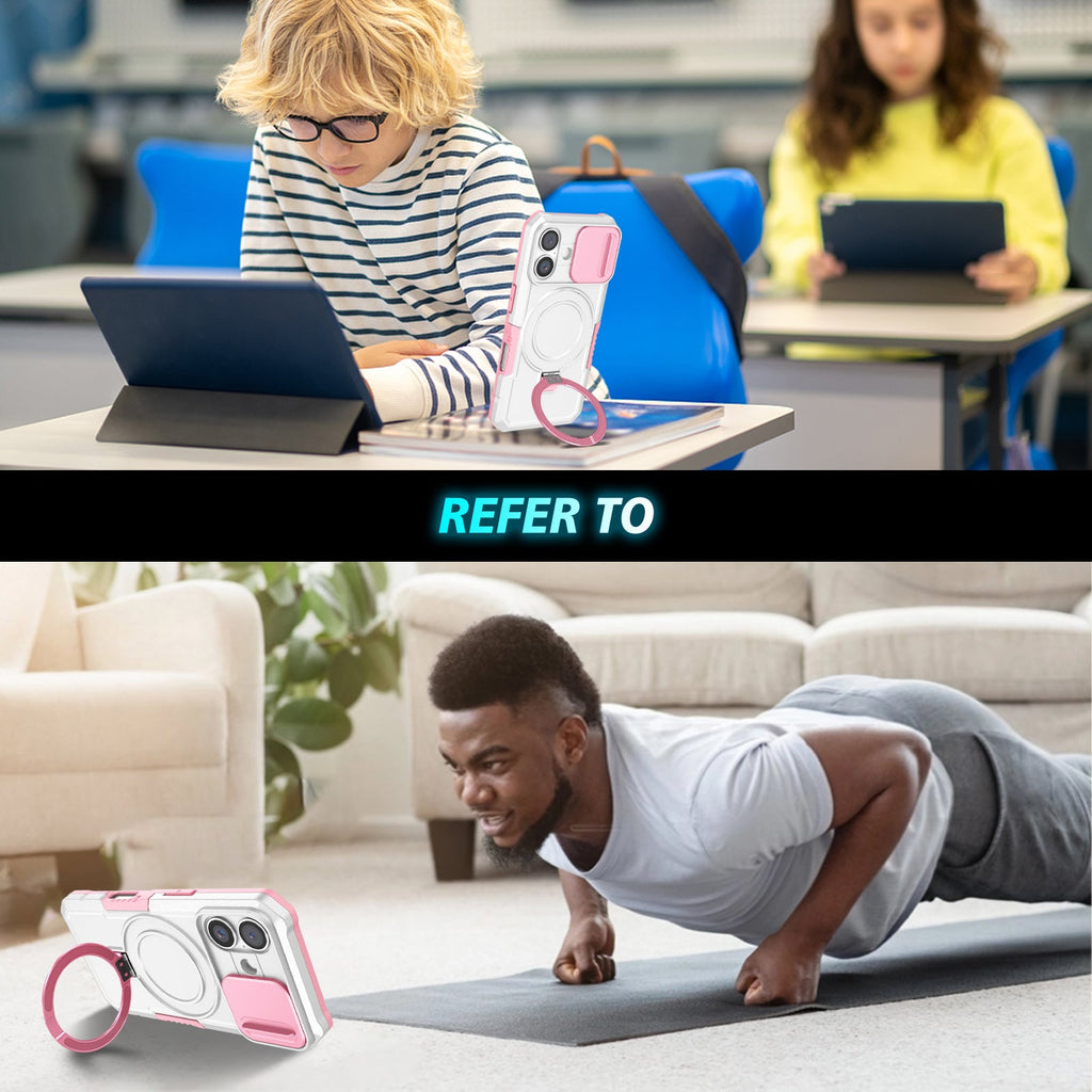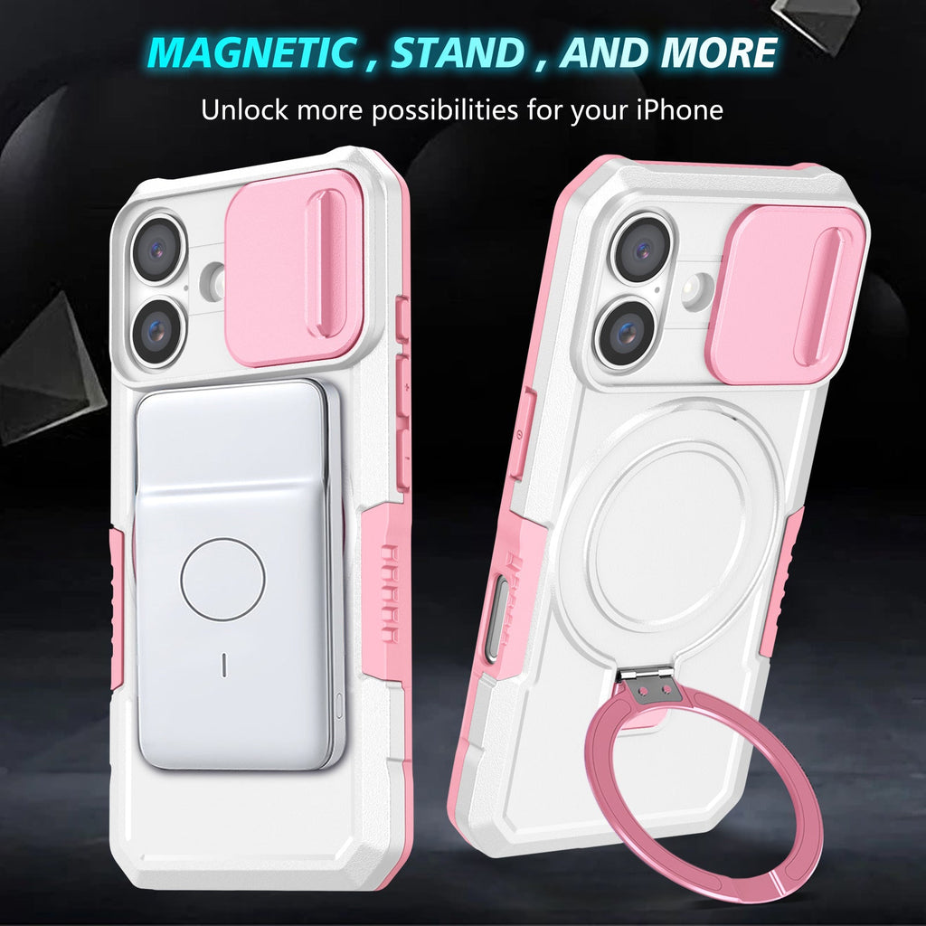 Quality MagSafe Compatible Magnetic Ring Heavy Duty Kickstand iPhone 16 Case with Rear Camera Sliding Cover
